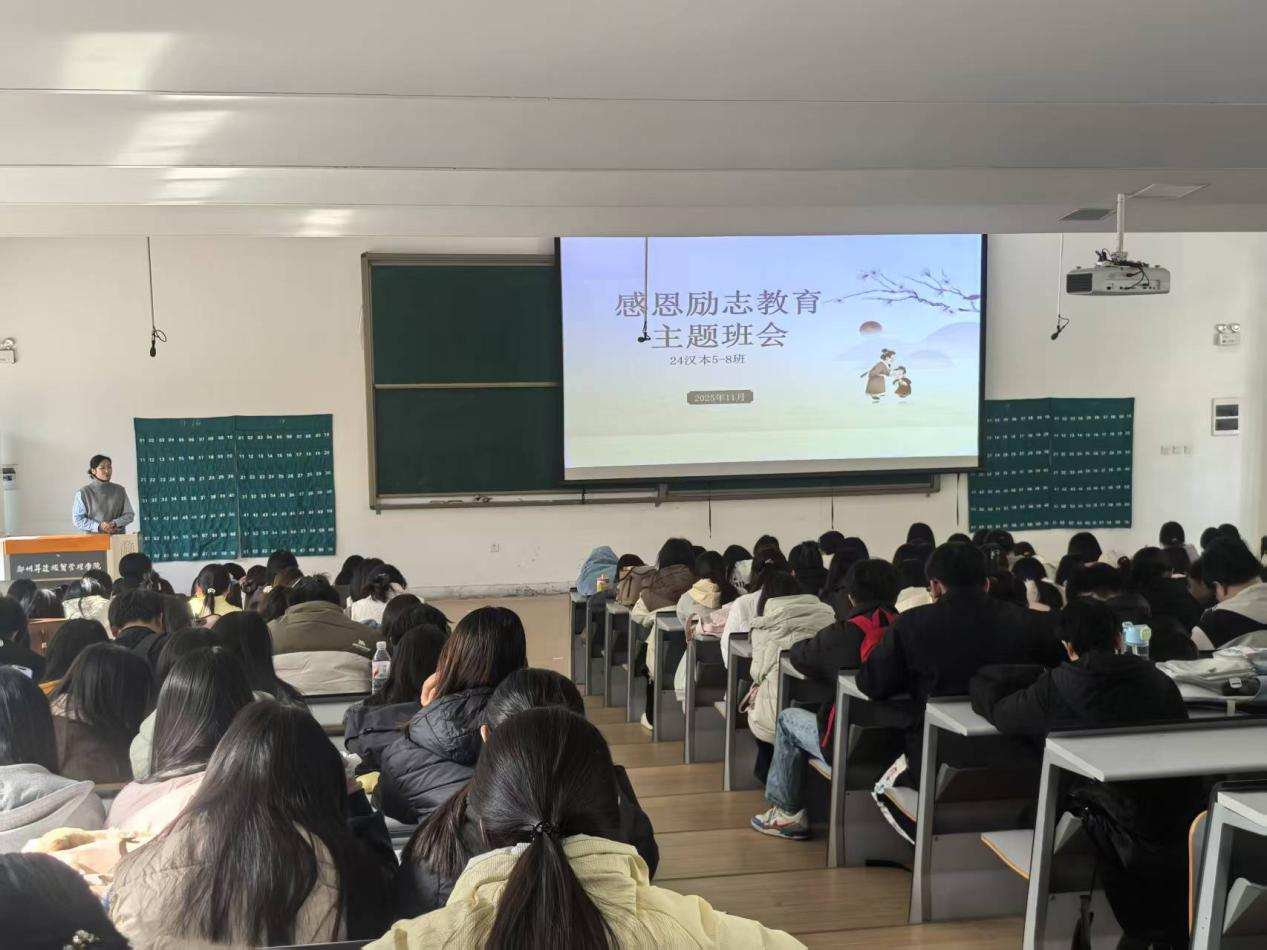 2024级汉本5-8班召开感恩励志教育主题班会。通过政策讲解和受助同学个人经历分享,深化了同学们对资助育人政策的理解,营造了班级内部良好的资助育人氛围。2023级汉语言文学本科3班于11月26日开展感恩励志教育班会。活动以“感恩于心,励志于行”为核心,通过“感恩分享会”“励志故事共读”“未来规划打卡”三个环节,让学生在互动中感悟成长。2024级法学本科1-3班召开主题班会,强调助学金发放纪律,引导学生树立正确的消费观,避免盲目消费和浪费,引导学生增强诚信、感恩意识,合理规划和使用助学金,生活上勤俭朴实,学习上勤奋好学,促进个人学业和综合素质的提升。其余各班均结合班级情况开展了各具特色的诚信感恩主题教育活动。
