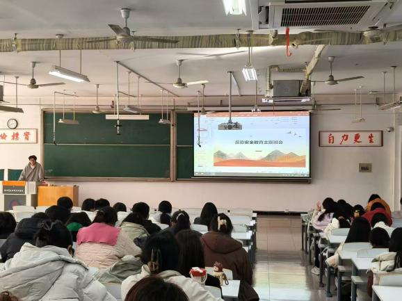 学院在接到学校部署后,结合自身实际情况,依托“学校-学院-班级”三级网格化安全管理体系,文法学院党委副书记郑玲玲通过学院专题会议组织教师进行深入学习,随后通过辅导员引导学生开展学习,将反恐知识传递至全体学生,营造出浓厚的学习氛围。