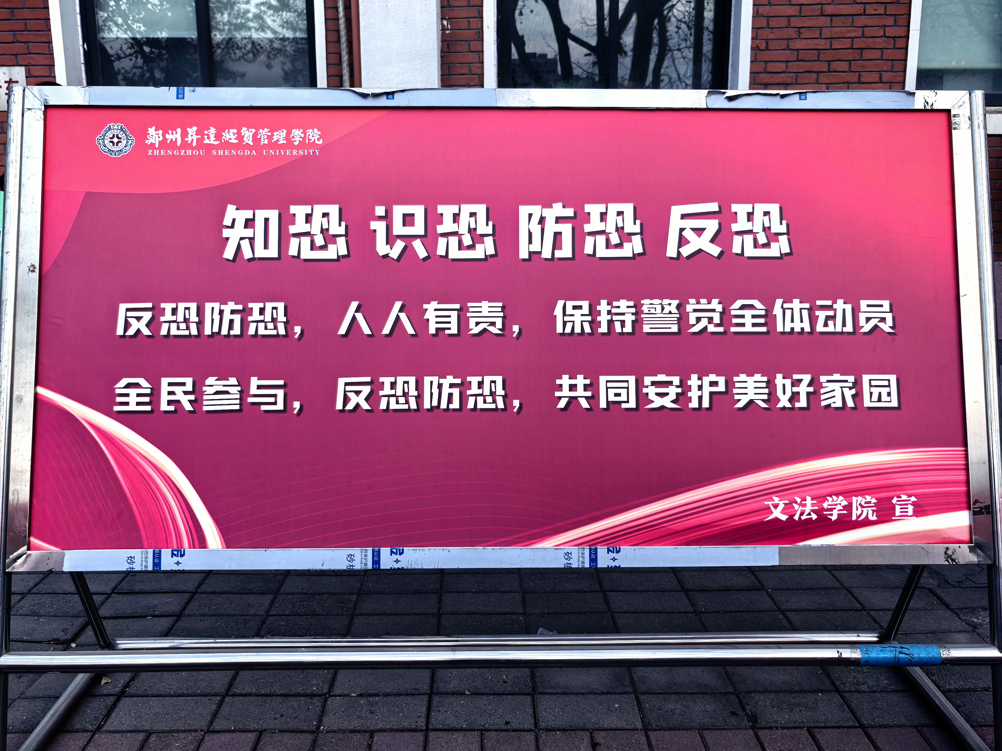 近日,文法学院积极响应省教育厅的通知要求,围绕“全民反恐豫筑平安”的主题,开展了一系列反恐防恐宣传教育活动。此举旨在提升师生反恐防恐的意识和应急避险能力,推动反恐怖主义法律法规深入人心,引导广大师生实现“知恐、识恐、防恐、反恐”的目标,共同营造平安和谐的校园环境。