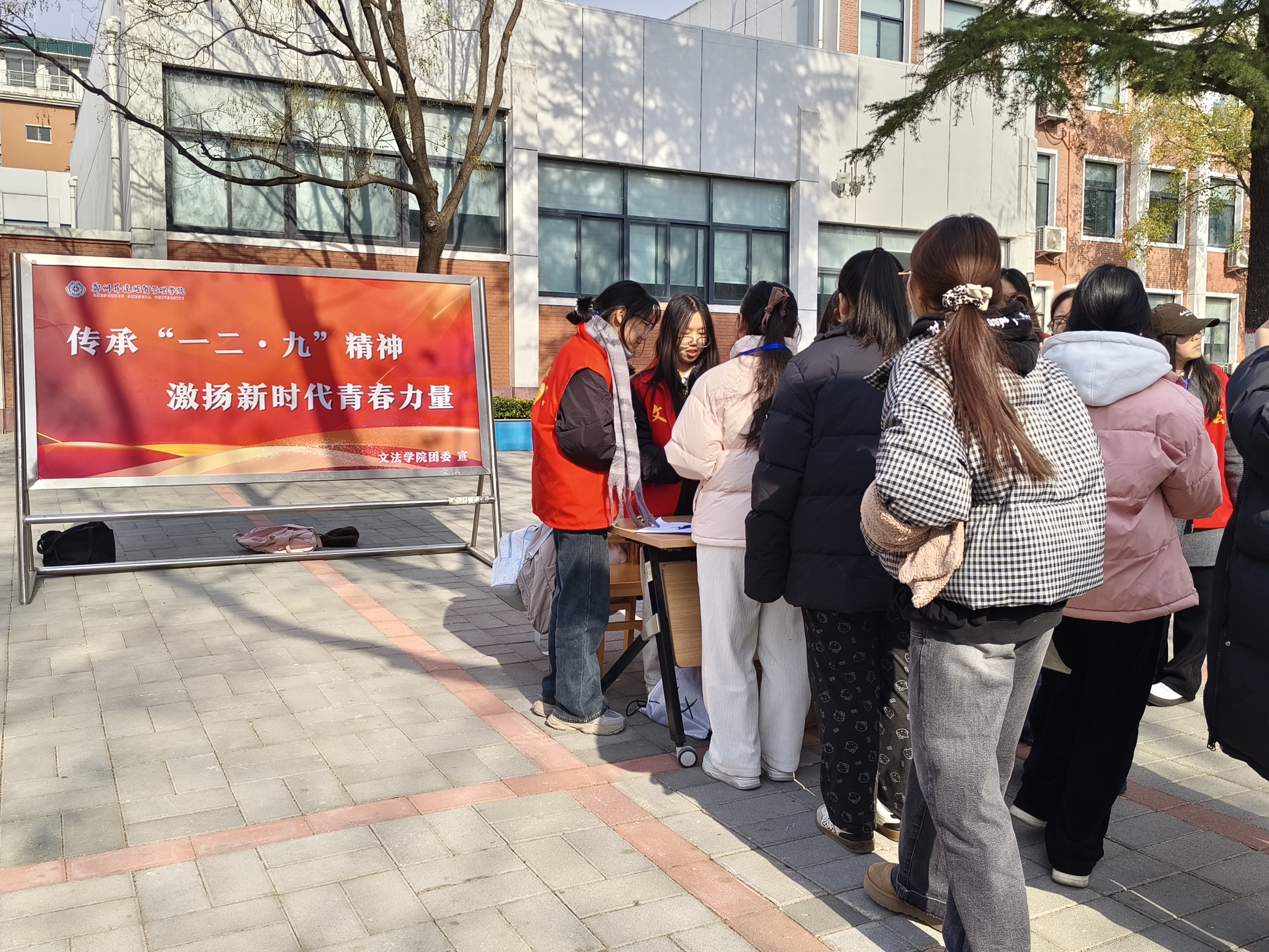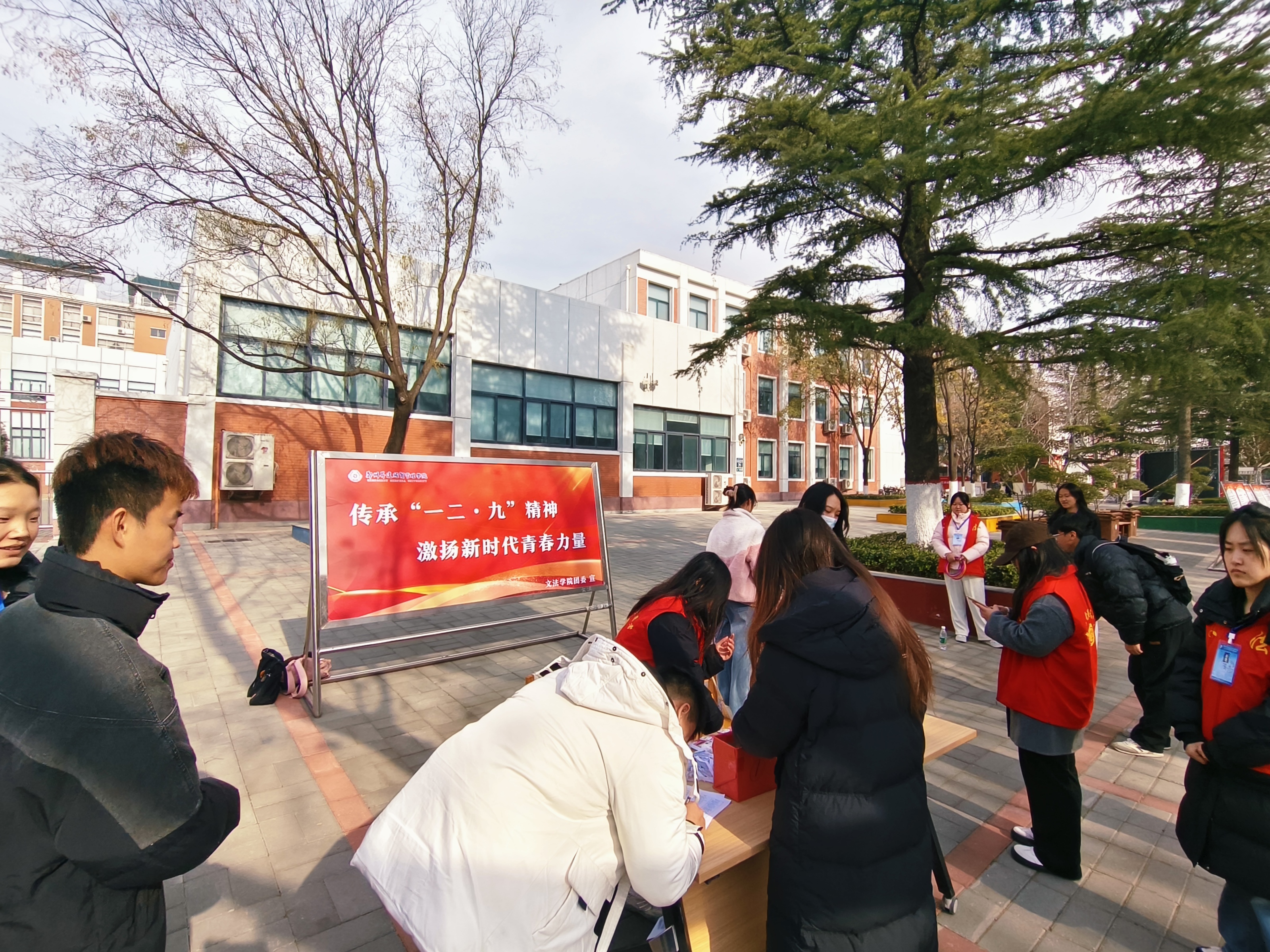 值一二·九运动90周年之际,为重温革命历程、感悟初心使命,由文法学院团委学生会主办、权益部与联络服务部联合承办的“薪火赓续一二·九 青年逐光奋前行”纪念一二·九运动知识竞答活动于12月8日中午12点至下午3点在教学1号楼南侧广场举行。此次活动面向全校学生。