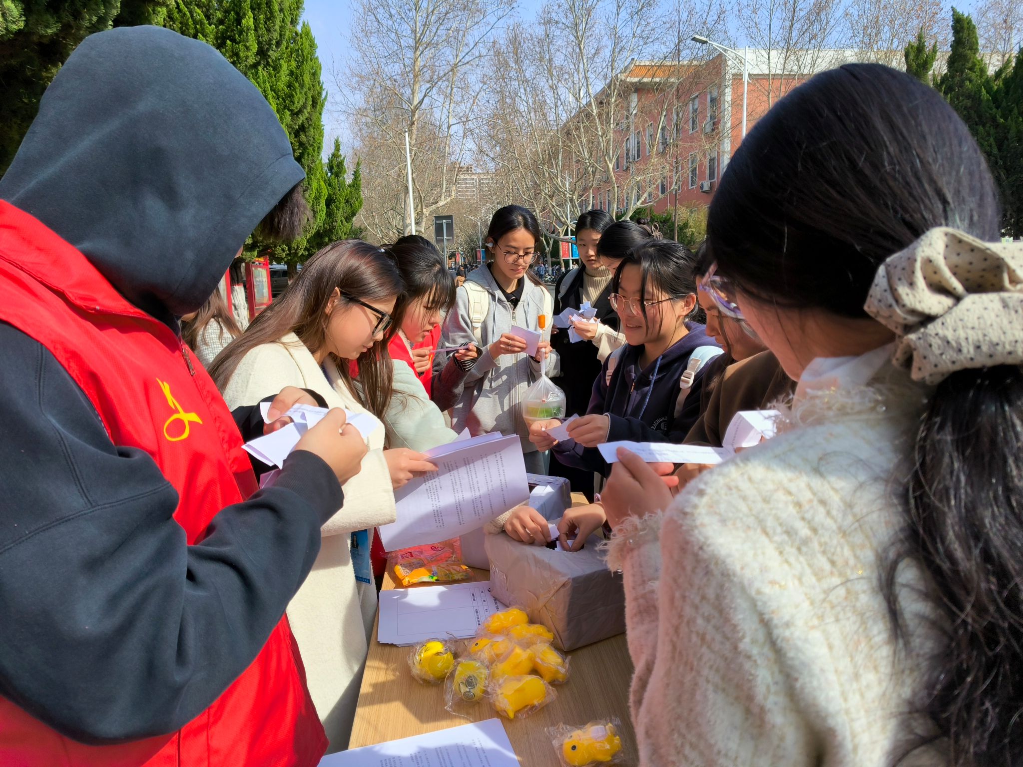 本次活动分为法律知识答疑解惑和法律知识问答两个环节。经过前期充分的准备工作,活动负责人向在场的参与者介绍活动流程和注意事项后,活动正式开始。首先是法律疑问解答环节,同学们将想要咨询的法律问题写在问题收集表上并留下联系方式,之后由专业人员对这些问题进行认真细致的解答,并在活动结束后以短信的方式将解答结果反馈给同学们。随后是法律知识问答环节,问题的内容丰富多样,涵盖了消费者权益保护、劳动法、网络安全法等多个方面,都与我们的日常生活息息相关。活动现场气氛热烈,同学们踊跃参与,积极回答各种法律问题。