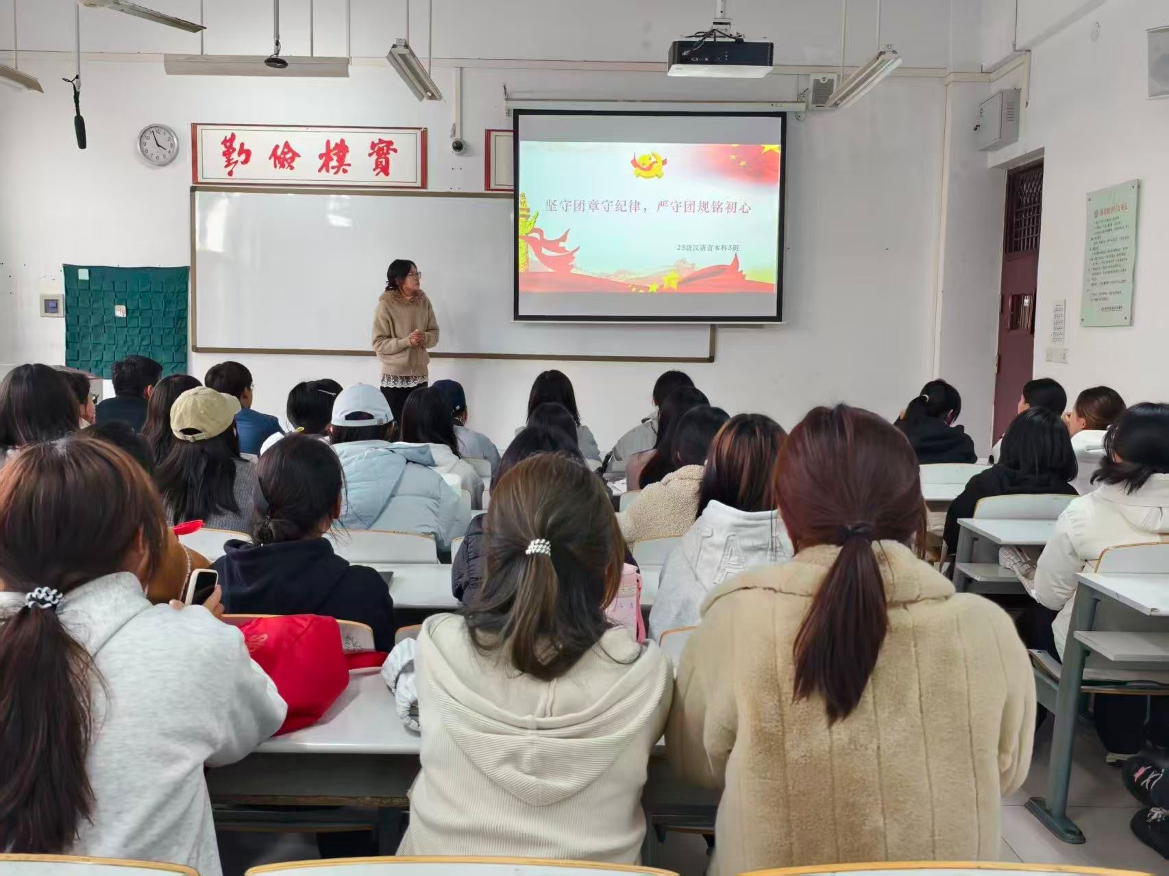 为提升团员的思想先进性,筑牢青年团员的思想根基,文法学院2025级汉语言文学本科3班团支部于11月7日下午在道镕楼309教室举办了主题为“坚守团规守纪律,严守团规明初心”的团日活动。此次活动由团支书裴彤彤主持,2025级汉语言文学本科3班团支部全体同学积极参与。