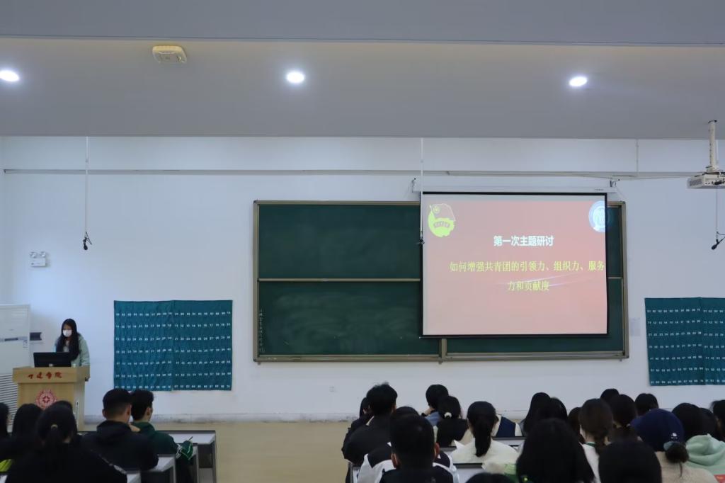 为提升基层团干部的理论素养、工作能力,4月6日晚上6点,文法学院在教学1号楼118教室开展以“如何增强共青团的引领力、组织力、服务力和贡献度”为主题的团支书研讨会。本次会议的主持人是文法学院团委副书记刘艺萍,文法学院20级、21级、22级团支书到场参与本次研讨会。