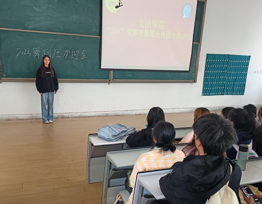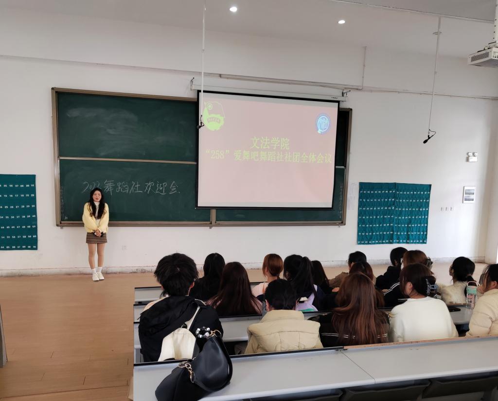 为扩大社团影响力,增强社团成员之间的凝聚力,为新老社员创造更好的交流学习平台。文法学院“258”爱舞吧舞蹈社于11月22日13点,在教学1号楼118举行2023级新生社员迎新欢迎会,全体社团成员积极参加此次大会。