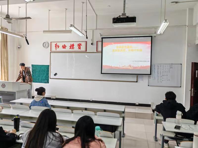 活动开始,朱永政带领大家重温入团誓词、讲解清明祭英烈活动的意义所在,成员们缅怀先烈,表达对先辈们的哀思。接着,团支部组织委员丰慧影指出开展本次主题团日活动旨在通过革命传统教育厚植同学们爱党、爱国、爱社会主义的情感,培养大家坚定正确的信仰、铸造高尚的灵魂、养成良好的品格,真正成为担当民族复兴大任的时代新人。随后,朱永政鼓励支部团员筑牢自己的专业基础,将个人理想融入到社会需要和祖国发展中,通过理论学习、实践宣讲等扎实专业知识,勇担社会责任,助力民族复兴。最后,朱永政再次强调,作为中华民族伟大复兴的接班人,大家应当加强理论学习,用先进的思想武装头脑,争当爱国主义的好青年。