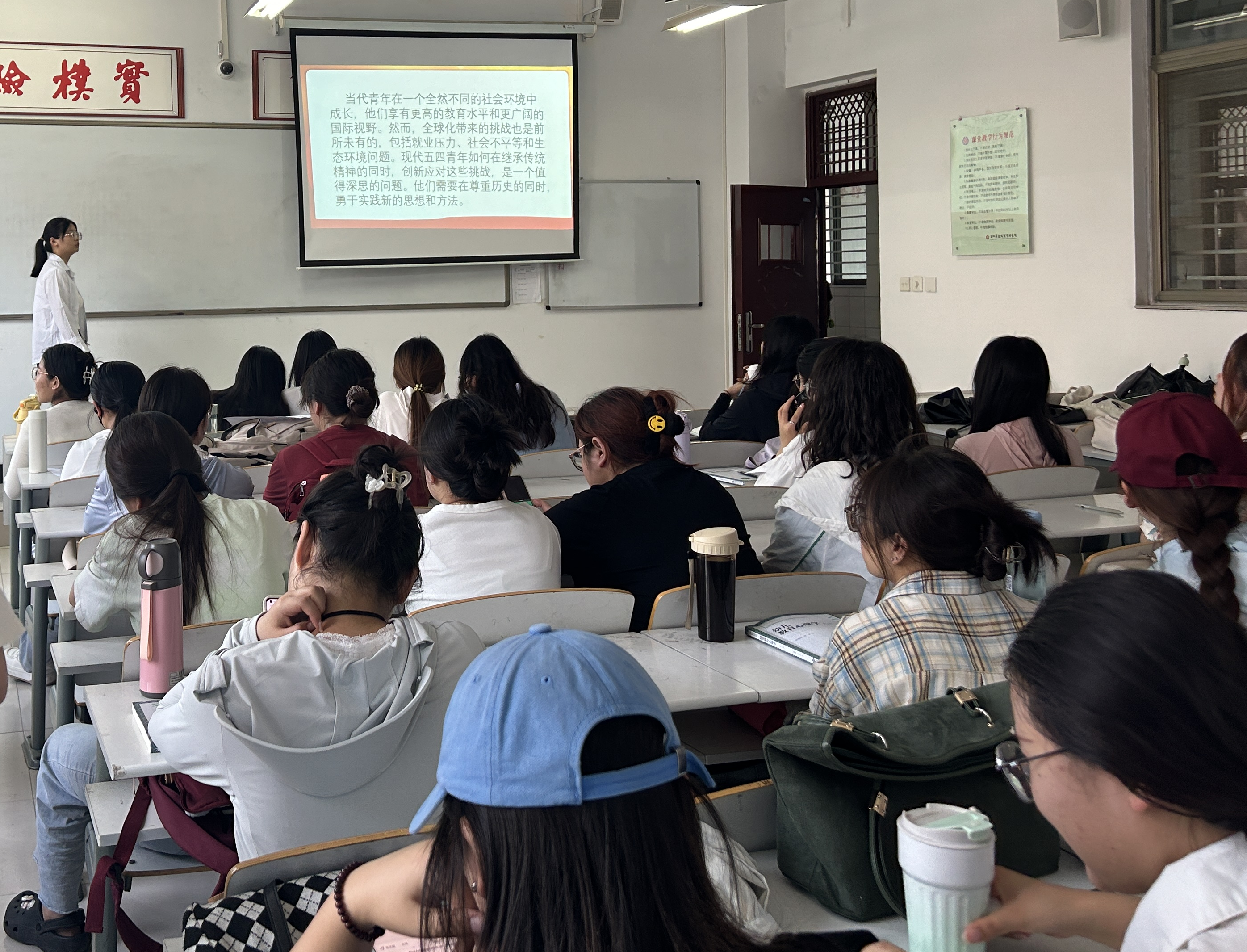为引导团员们深刻领悟五四青年节的时代价值,用青春的力量书写新时代的华章。5月14日下午2点,2023级学前教育专升本6班团支部于道镕楼311教室开展“青春挺膺担当——以青春之我,创造青春中国”主题团日活动。活动由团支书赵季平主持,团支部全体同学参与。