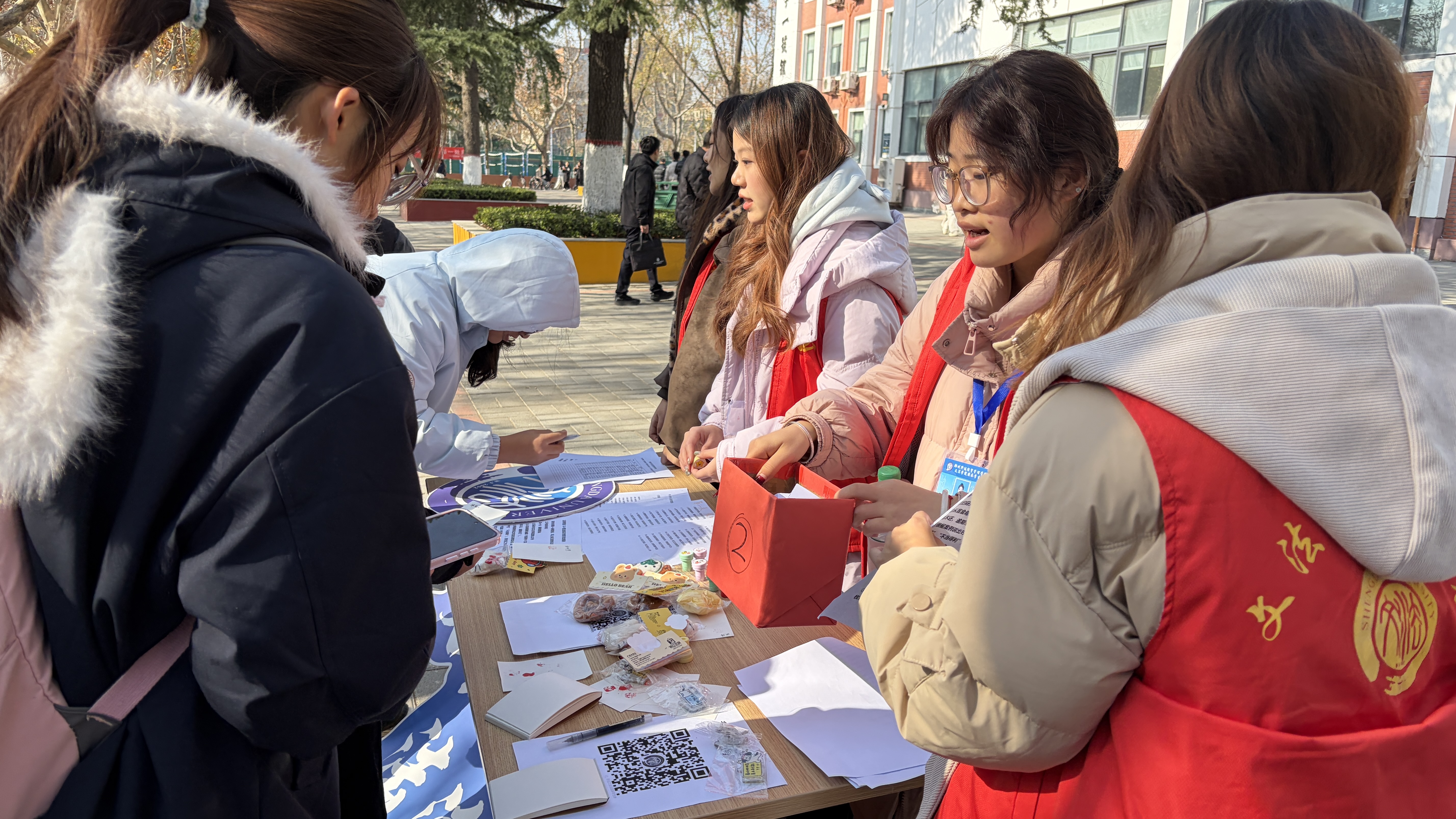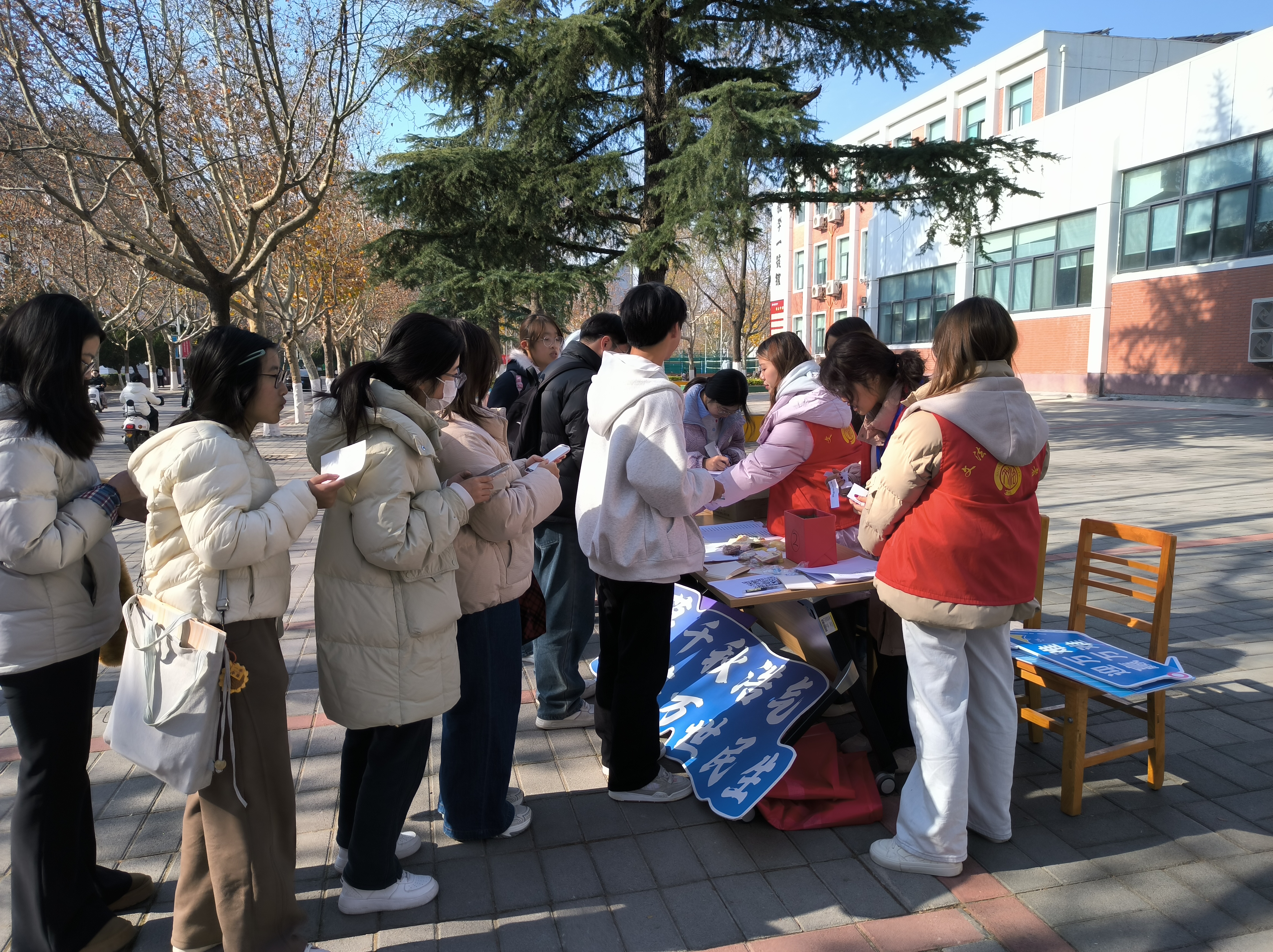 为深入学习法治思想,提升青年学生法治素养,由文法学院团委学生会主办、学习部承办的“法育青苗”团学活动品牌之“12·4”普法活动于12月4日下午在教学1号楼南侧小广场成功举办。