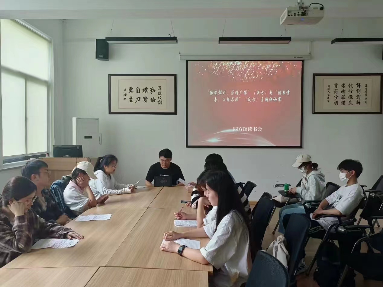 2023年6月2日中午,由文法学院“四方馆”举办的主题为“博览群书和读书贵专,你认为哪一个更重要”辩论赛在教学一号楼314会议室顺利举行。此次比赛由社长郜佳、社团理事长宋迎涛、文法学院辩论队副队长韩祥林担任评委,社团组织部部长付宣淳担任主席,社团其他成员分为正反两方进行4V4辩论。