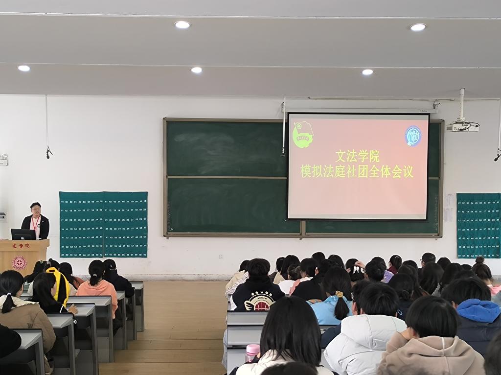 为活跃校园文化生活,明确社团发展的方向和重点,文法学院模拟法庭社团第一次全体会议于11月22日13点在教学1号楼118教室召开。文法学院社团指导老师王松洁、李群锋,文法学院第二十二届团委学生会主席团和模拟法庭全体成员参加此次大会。会议由文法学院学生会副主席韩祥林主持。