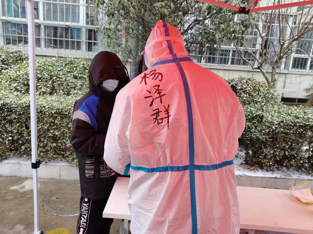为防止疫情的蔓延扩散,林州市迅速开展多轮全员核酸检测。杨泽群同学主动请缨参加核酸检测志愿服务,在检测过程中,他的主要工作是对居民们进行信息采集。在采集信息前,他认真学习了相关知识和注意事项。对于行动不便或者是居家隔离的人员,杨泽群同学会协助医护人员上门核酸检测,同时做好信息采集工作。在核酸检测之外的工作时间,杨泽群同学坚持在小区疫情防控卡点值班,负责查看进出人员的健康码和行程码、进行体温测量和信息登记。