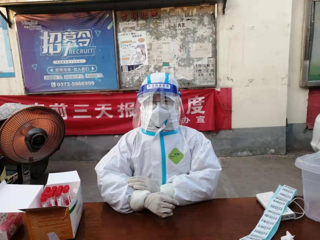 在社区工作人员安排下,王慧敏在安阳市龙安区太行街道龙兴社区对进出人员进行排查和登记,协助医护人员维持核酸检测现场秩序、检测登记。对于社区里行动不便和居家隔离的人员,志愿者们配合医护人员上门进行核酸检测。在这场没有硝烟的“战争”中,王慧敏和其他志愿者同心协力协助社区高效、安全、有序地开展工作,她表示:“时刻发扬学生青年的先锋模范作用,为抗击疫情尽自己的微薄之力,这是一名有责任有担当的大学生应该做的!”
