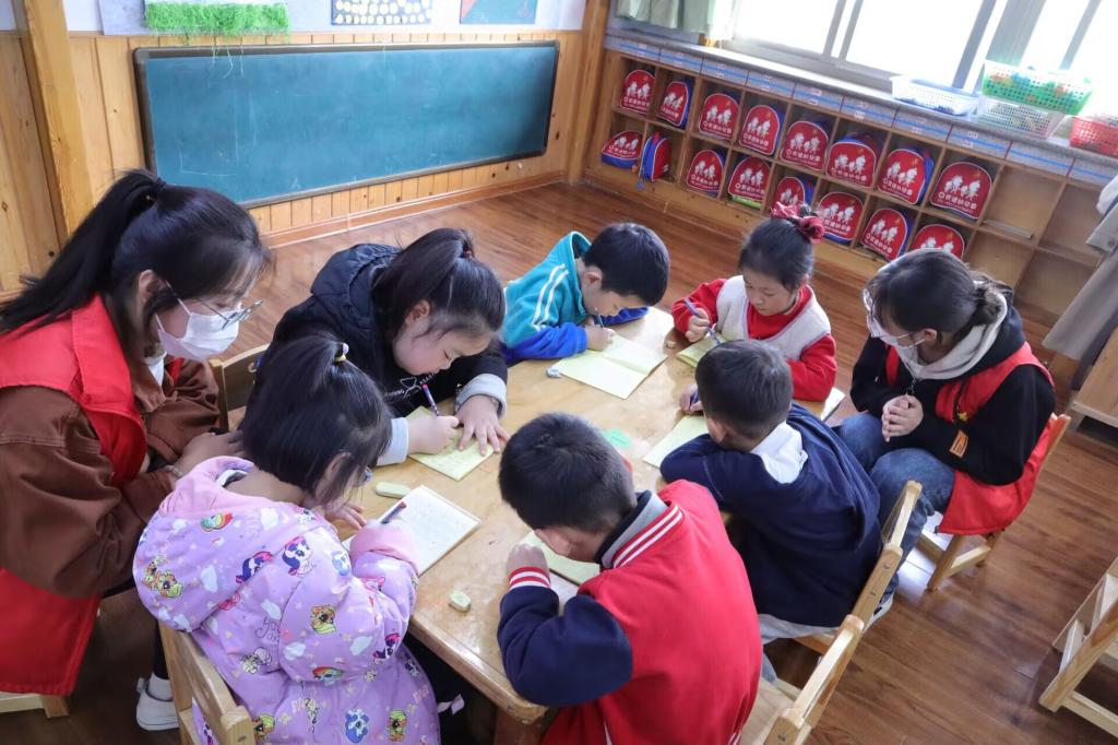 本次活动中志愿者共分为五组,每组负责一个班。在小朋友午睡起床后,志愿者们帮助他们整理衣服和头发。然后五个班分别进行学汉字、做手工、学画竹、写拼音和户外活动。活动过程中,志愿者与孩子们亲密交流并辅助老师完成各项教学环节,整个活动氛围温馨美好。活动进入尾声时,志愿者们带着小朋友们洗手做清洁。最后,志愿者们在幼儿园操场进行合影留念,本次活动圆满结束。