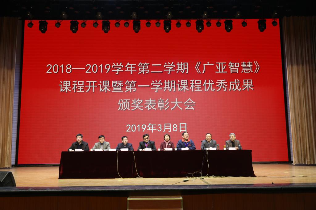 为表彰先进、树好导向,激励广大师生深入学习研究广亚办学理念、广泛弘扬广亚教育精神,3月8日下午,由王广亚研究中心举办的2018—2019学年第二学期《广亚智慧》课程开课暨第一学期课程优秀成果颁奖表彰大会在思源会馆顺利开展。出席颁奖表彰大会的领导和嘉宾有:执行董事王新奇、校长郭爱先、常务副校长崔慕岳、副校长张金安、副校长吴益民,王广亚研究中心三位特聘专职教授:刘道兴院长、辛世俊教授、王东虓教授。发展规划处处长沈定军、科研处处长杨存博、王广亚研究中心教职员及我校2016级、2018级信工、艺术、体育、会计等四个学院1600余名学生见证了颁奖大会的实况,并参与了第二学期《广亚智慧》课程的听讲。大会由常务副校长崔慕岳主持。