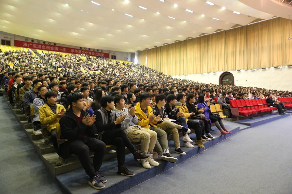 刘院长向会场同学说明开设学习《广亚智慧》课程的目的和意义,他指出,作为升达人就要了解、融入、热爱、增辉升达,这一切最基本的就是要从了解创办人王广亚先生开始。刘院长通过图片形象展示了创办人王广亚先生的教育生涯,对先生的生平事迹进行了详细讲述,对先生披荆斩棘、历尽艰辛创造的教育成就予以高度赞扬和由衷的钦佩,对创办人办学的最得意之作郑州升达经贸管理学院给予了充分肯定。他希望同学们通过《广亚智慧》课学习创办人的大智慧,明白做人做事的道理,汲取创办人的成功之道。他叮嘱同学们,不要忘记创办人的深情厚望,要以创办人为榜样,珍惜眼前美好学习时光,做到达人达己,永不止步,用实际行动来发扬和传承升达精神。