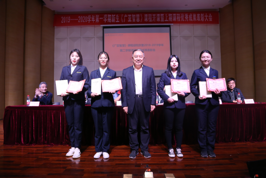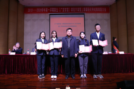 表彰会伊始,崔慕岳校长宣读2018-2019学年第二学期《广亚智慧》课程优秀期末学习成果学生名单。崔校长充分肯定了《广亚智慧》课程历经三个学期以来取得的成果,并衷心祝贺此次受到表彰的90名优秀学员。随后,与会领导和专家为受表彰学生代表颁奖,以表先进,以示鼓励。