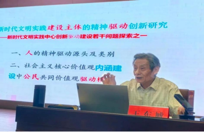 本次宣讲王东虓教授以《新时代文明实践建设主体的精神驱动创新研究》为主题,“创新精神驱动”、“弘扬精神品质”为关键词,从中国特色“精神动力学”的视角,探讨人们日用而不觉的精神驱动问题。找到驱动,才能调动。王教授指出要把握支撑革命精神背后的精神驱动力,找准人的精神驱动源头,才能在精神文明建设上达到一定的高度,也才能坚持党建引领导向,以高质量的精神文明建设为攻关目标,帮助党员干部和宣传思想政治工作人员,成为科学的宣传思想工作的“鼓劲者”、清醒的精神文明建设的“领头羊”。