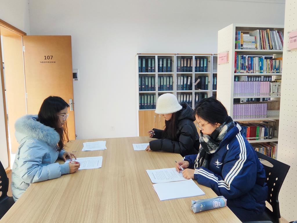 孙燕冉老师辅导翻译专业学生准备校内口译实践,学生负责泰国巴吞他尼大学到我校进行合作项目的口译工作。