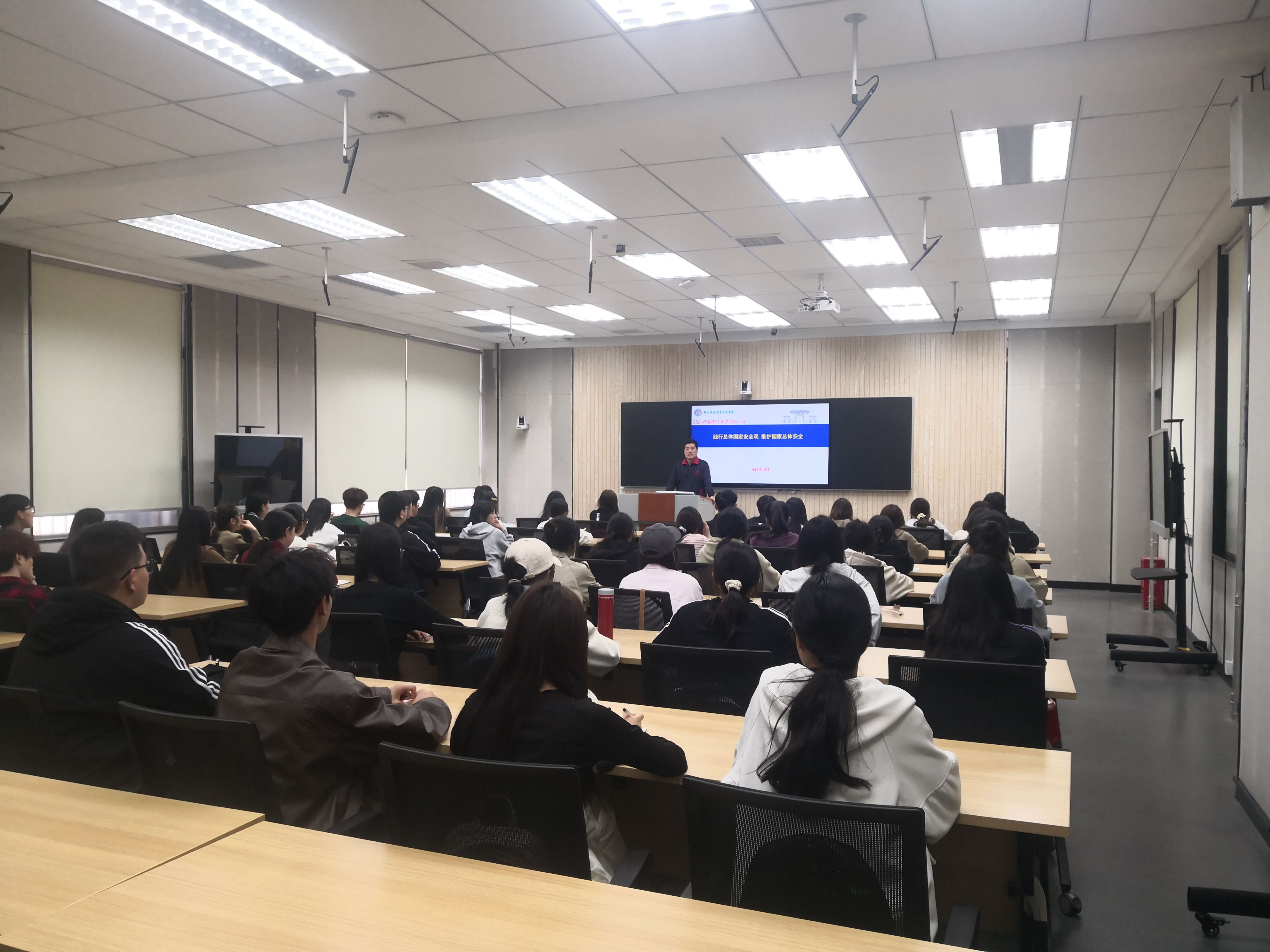 在风云变幻的当今时代,总体国家安全观已然成为我们守护国家安宁的坚实盾牌。2024年4月9日,外国语学院党委书记石皓召同志以“践行总体国家安全观,维护国家总体安全”为主题,在实训B楼101教室为外国语学院各班级学生代表上了一堂生动的春季开学思政第一课。
