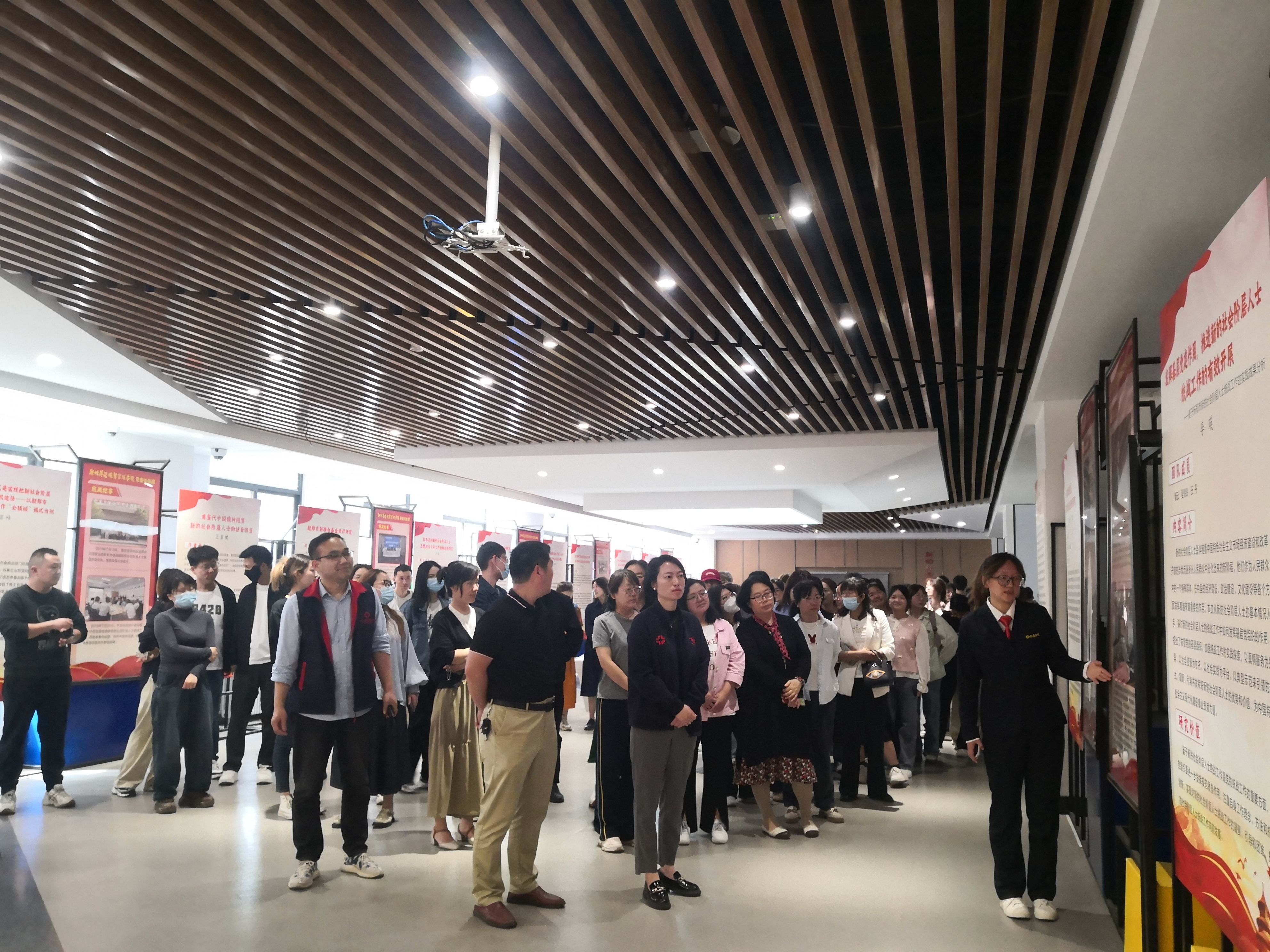在参展的过程中,我院师生紧随讲解员的步伐,聚精会神地参观展览,深入了解和学习我校统战工作的理论研究成果。这些成果充分展示了我校对于新的社会阶层人士在社会治理、经济发展、网络安全等关键领域所发挥的重要作用的深入研究。参观过程中,师生代表们深感振奋,对新的社会阶层人士统战工作的理解更加深入。他们纷纷表示,此次参观学习让他们收获良多,对统战工作的重要性和紧迫性有了更加清晰的认识。