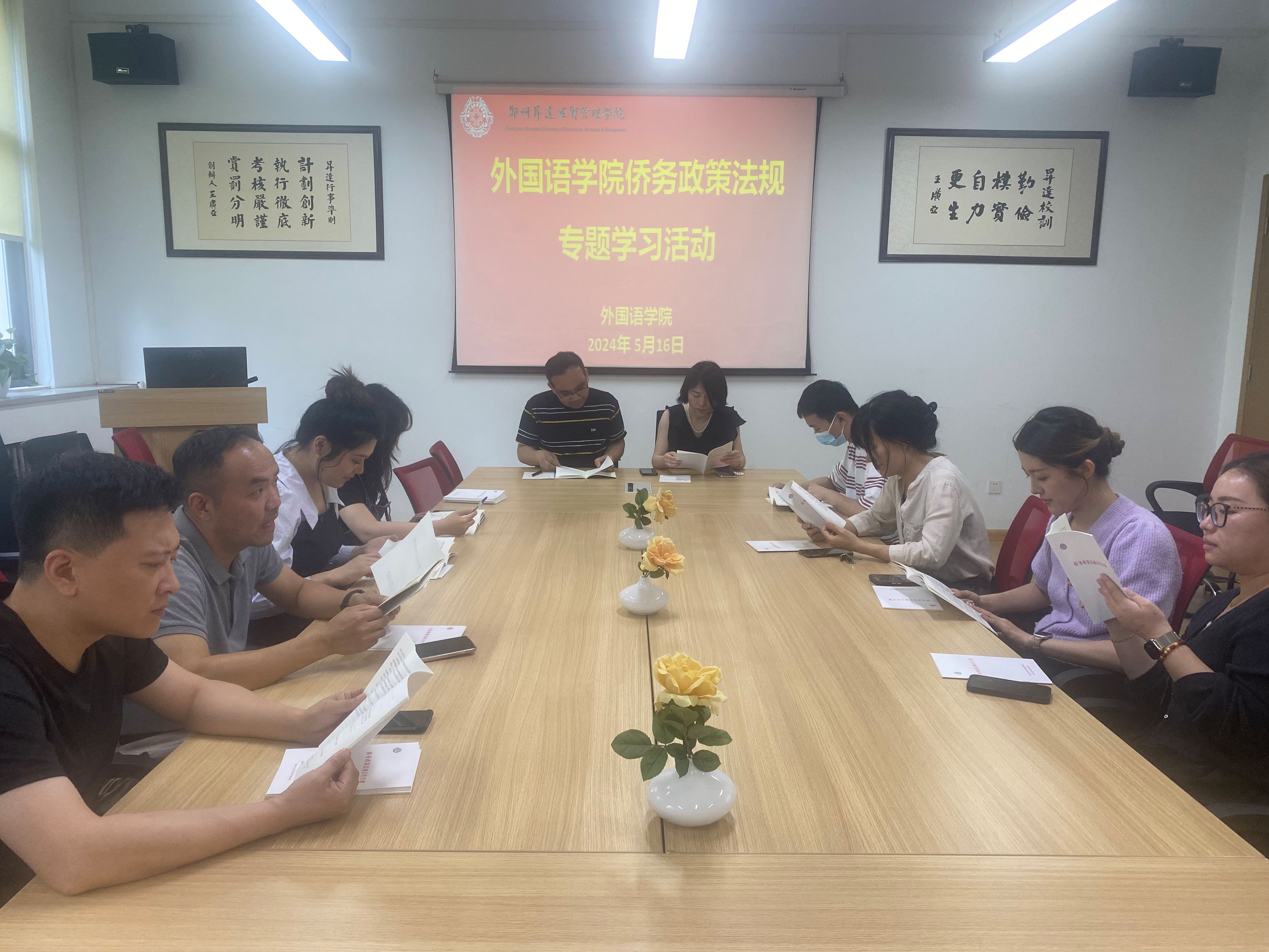 为进一步增进师生对侨务政策法规的理解和认知,强化服务侨胞的能力,外国语学院于2024年5月16日下午4点举办了一场侨务政策法规专题学习活动。学院院长崔瑾英以及学院有留学经历的部分教师代表参加此次活动,统战委员祁胜利老师主持会议。