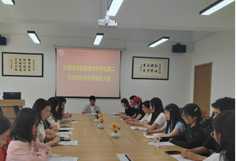2024年5月19日12点30分,外国语学院英语本科专业学生第二党支部在教学1号楼206会议室顺利召开了预备党员接收、转正及大会。会议由党支部书记赵志海老师主持,院党委组织委员王彬老师以及张媛媛老师参加了会议,整个流程按照党员转正程序有条不紊地进行。