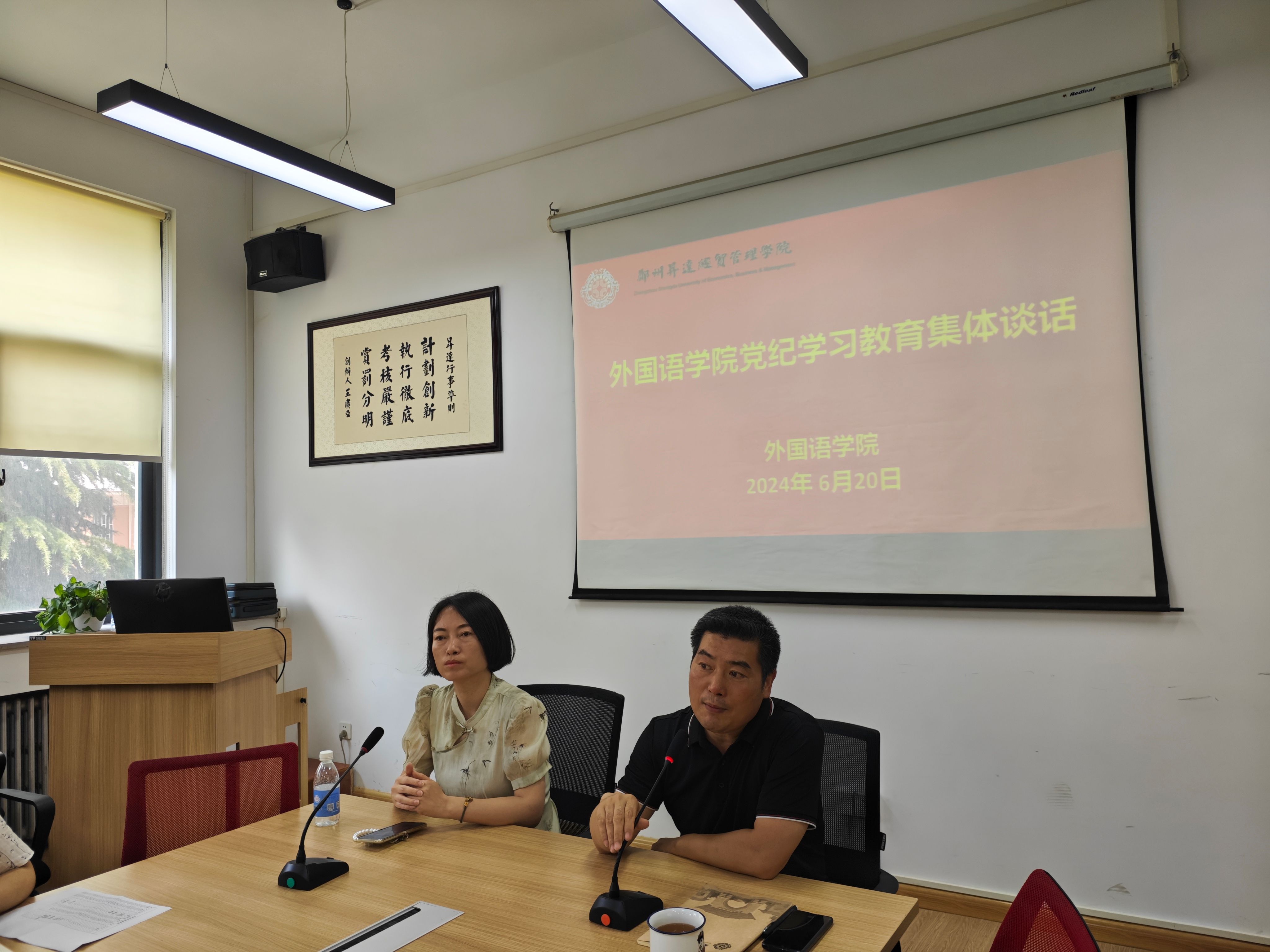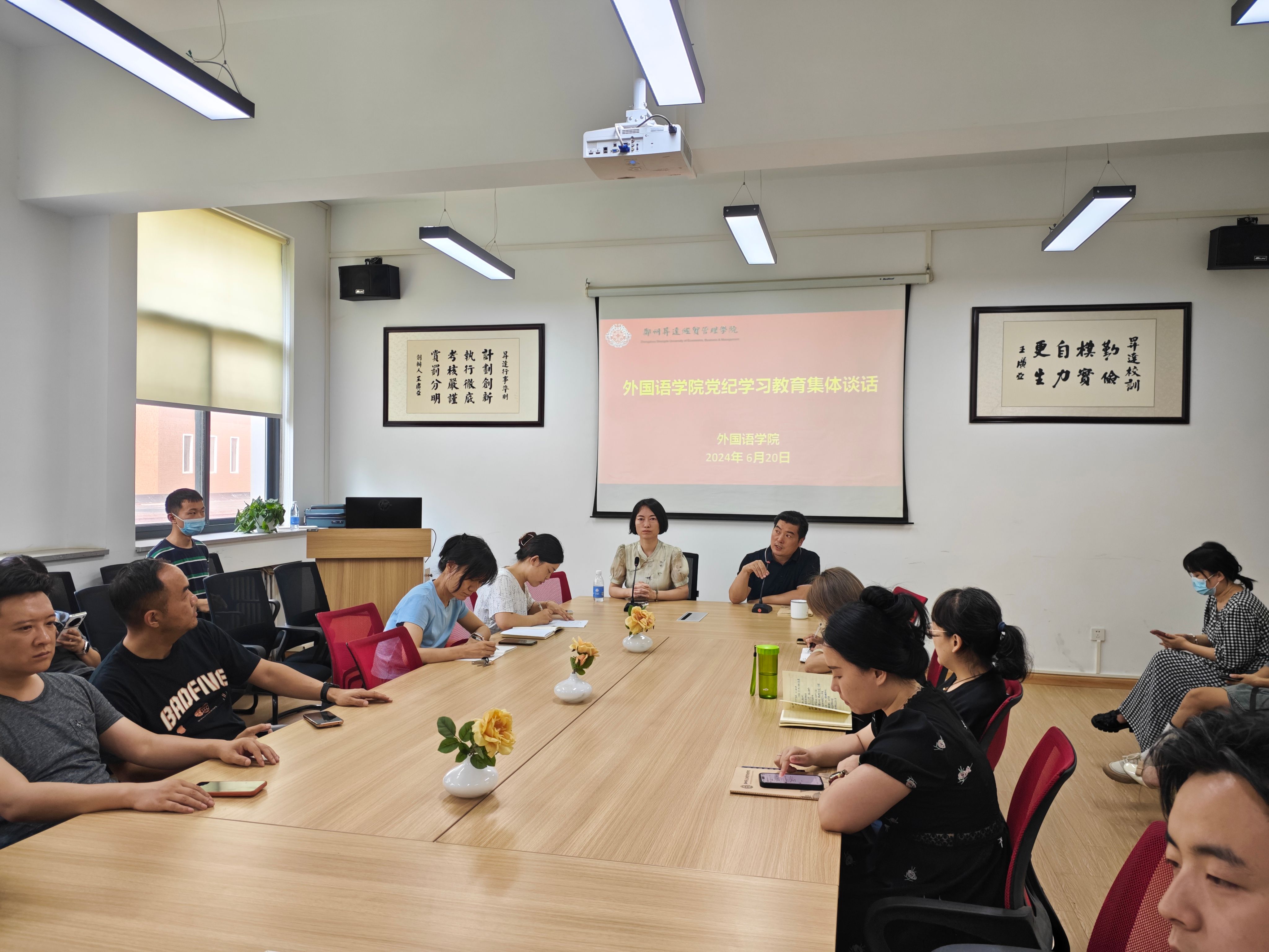 2024年6月20日,外国语学院在院206会议室组织开展党纪学习教育集体谈话。谈话由院党委书记石皓召主持,旨在进一步加强全院教职工党员的党性教育和纪律意识,推动学院党风廉政建设和反腐败工作向纵深发展。学院全体非党员教职工也列席了此次谈话。