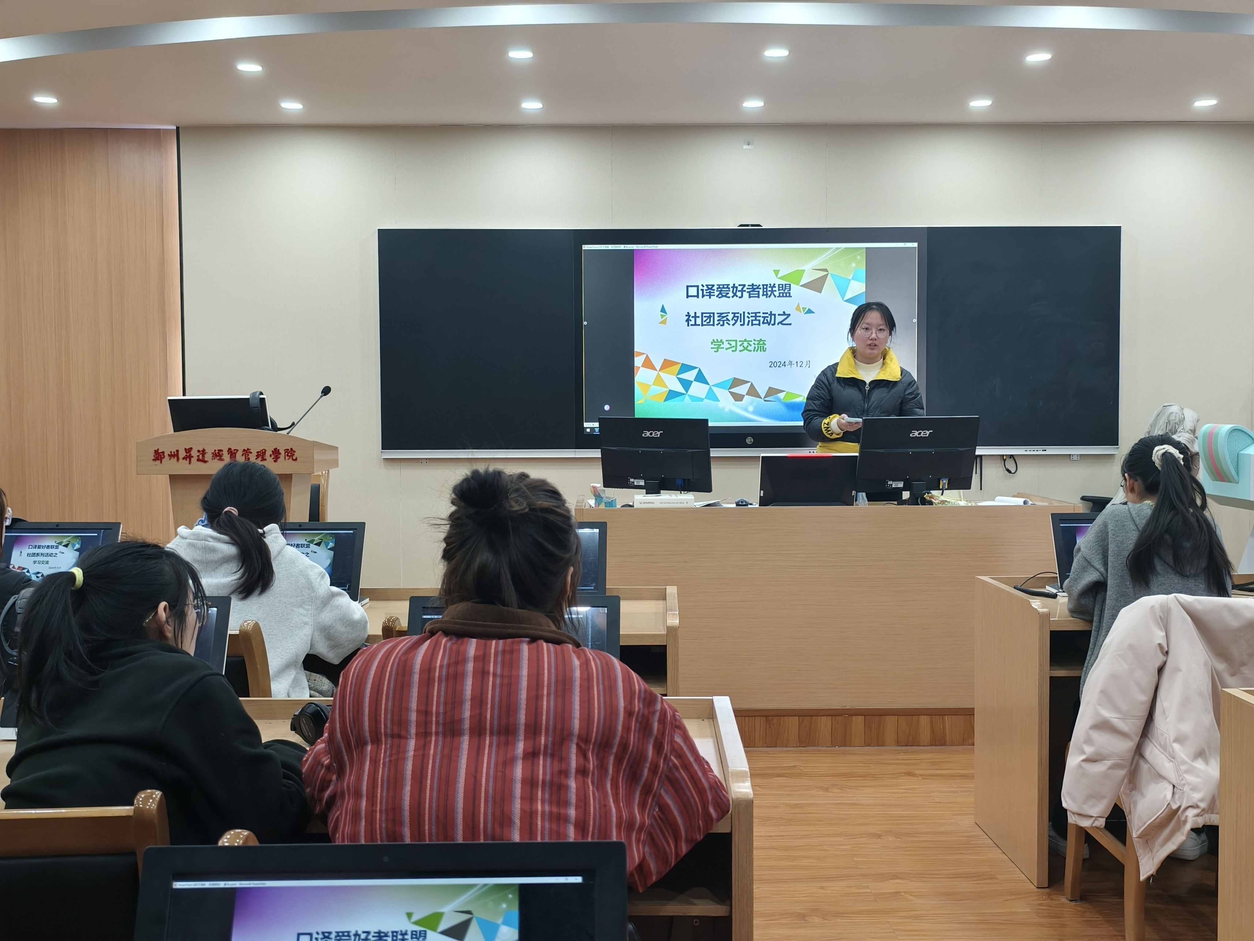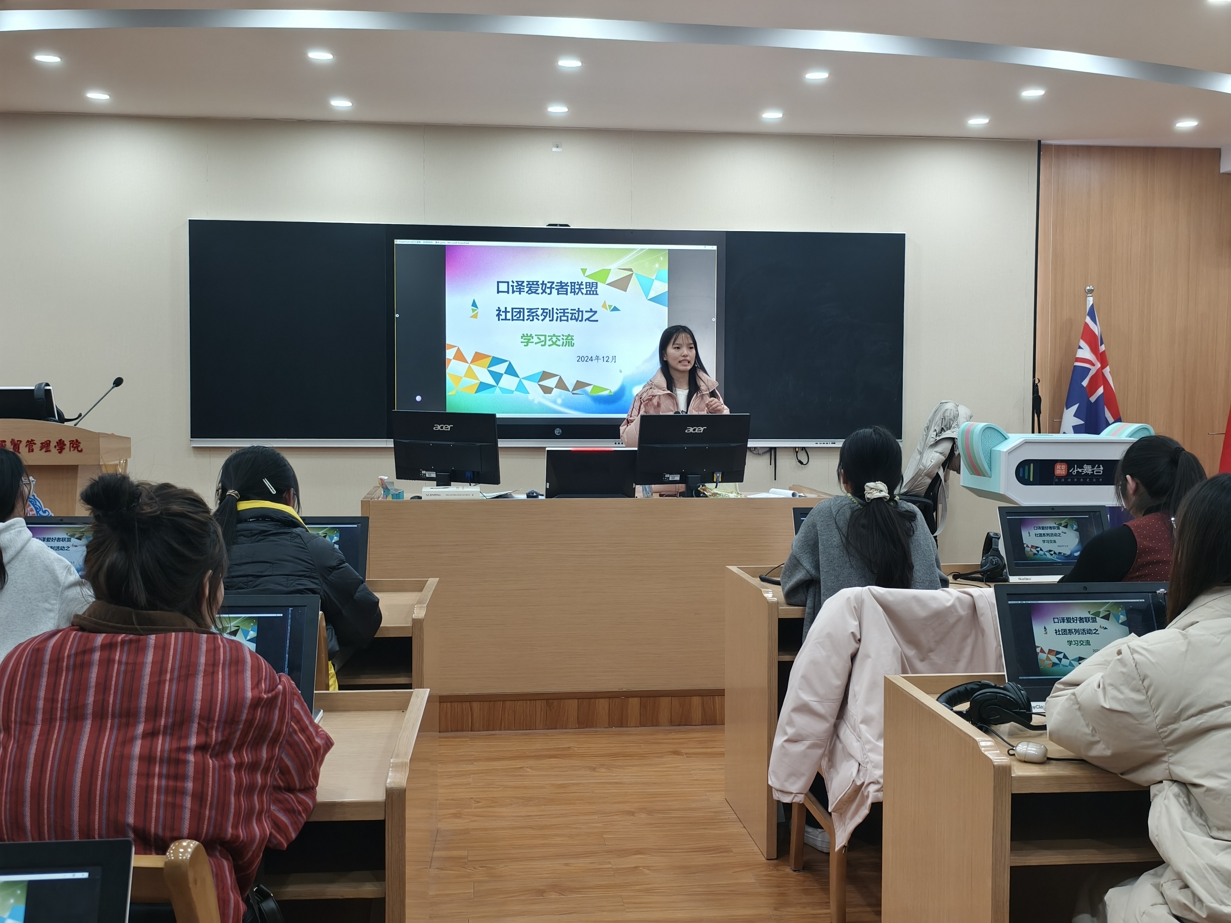 外国语学院翻译专业社团口译爱好者联盟于2024年12月2日中午在综合实训大楼B座201举行学习交流会,社团指导老师孙燕冉及全体成员参加会议,讨论各学习小组关于China Daily精读学习的执行情况。
