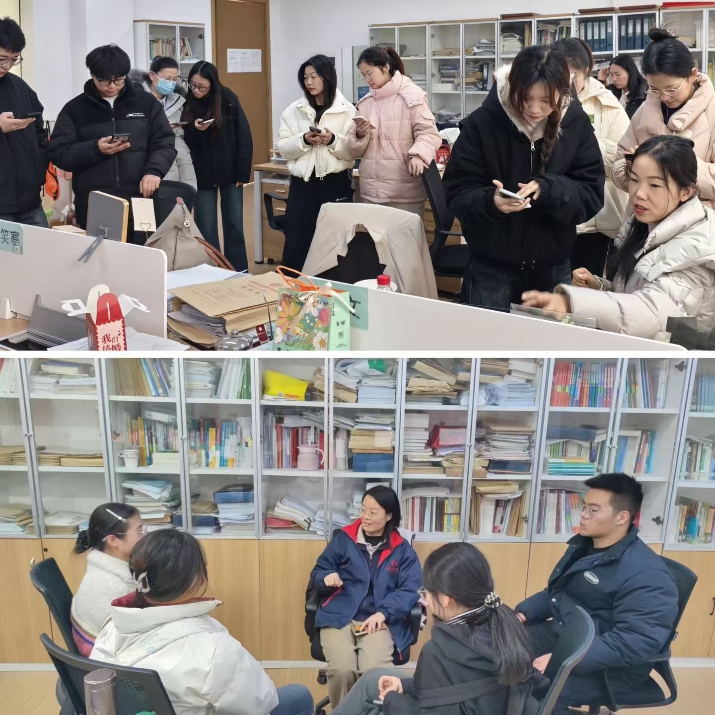 支部党员也通过线下的方式服务学生。如杜小芳根据学生三级笔译考试以及课下翻译情况,从基础强化、技能提升和资料推荐等多个方面进行辅导,力求提升学生翻译能力。张艳波给大一学生进行学业规划指导,给大二学生指导专业四级备考、课外英语阅读;给大三学生指导考研。孙燕冉、杜小芳指导学生论文,包括论文结构与写作、学术规范与引用、研究方、论文写作时间节点等内容。惠凯赟针与大一新生关于听力技巧、听力练习等学习问题进行探讨,给出练习方法的建议,鼓励同学们树立信心,制定计划,系统练习。同时和同学们一起讨论“短视频”现象,建议制定“强制戒断”,每周抽出时间全身心投入学习,体会和感受效果,期末在即,希望同学们认真备考,考出好的成绩。牛文文指导学生听力练习,讲解如何结合个人情况进行听力材料的选取,并解决学生在课下精听与泛听练习中遇到的问题,助力学生备考专四。