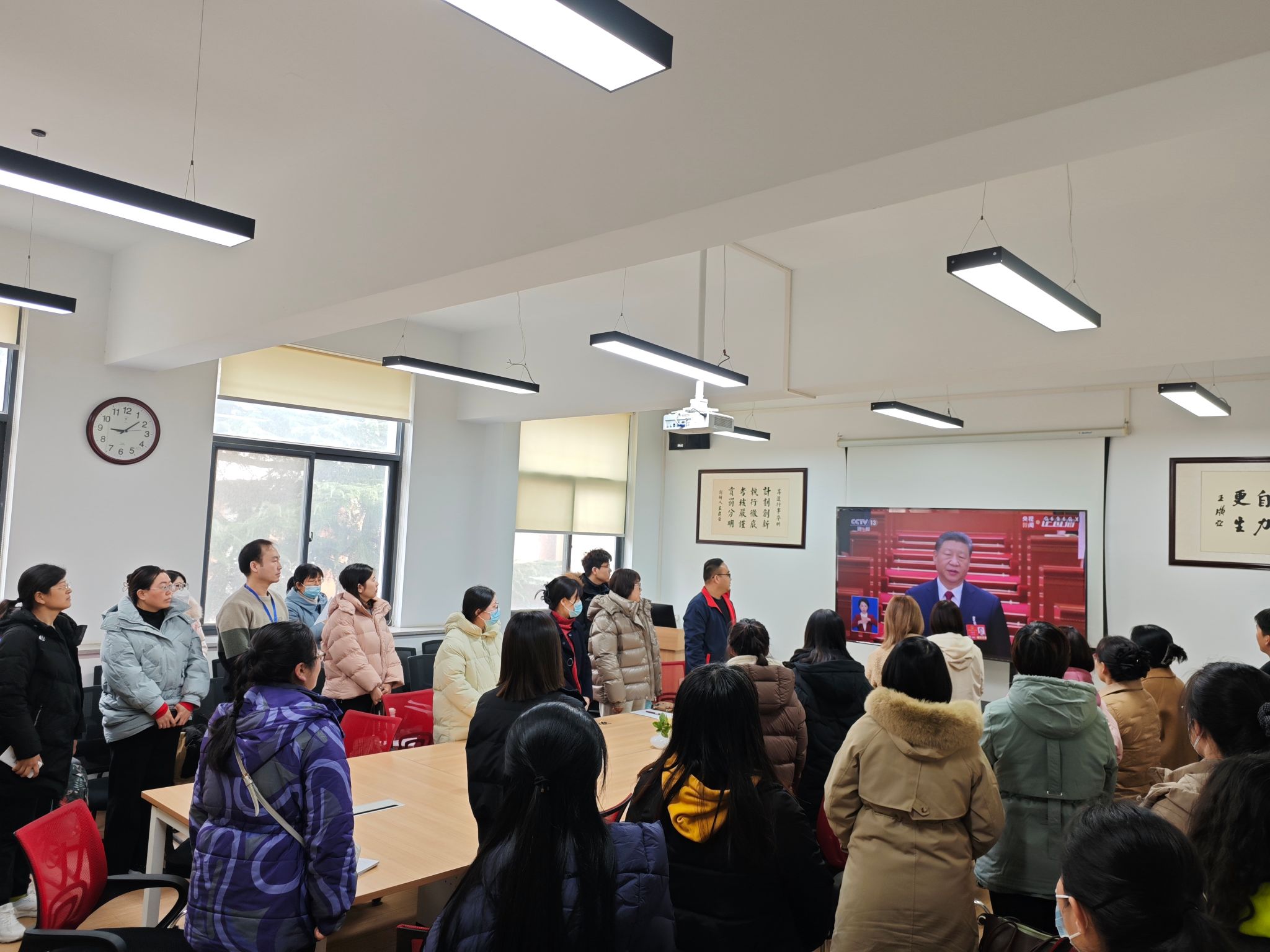 此次集体观看活动不仅加深了教职工对国家大政方针的理解,也增强了大家的责任感和使命感。外国语学院将继续组织类似活动,引导教职工和学生紧跟国家时事政策,共同为实现中华民族伟大复兴的中国梦贡献力量。(图/王彬,文/王彬,审核/石皓召)