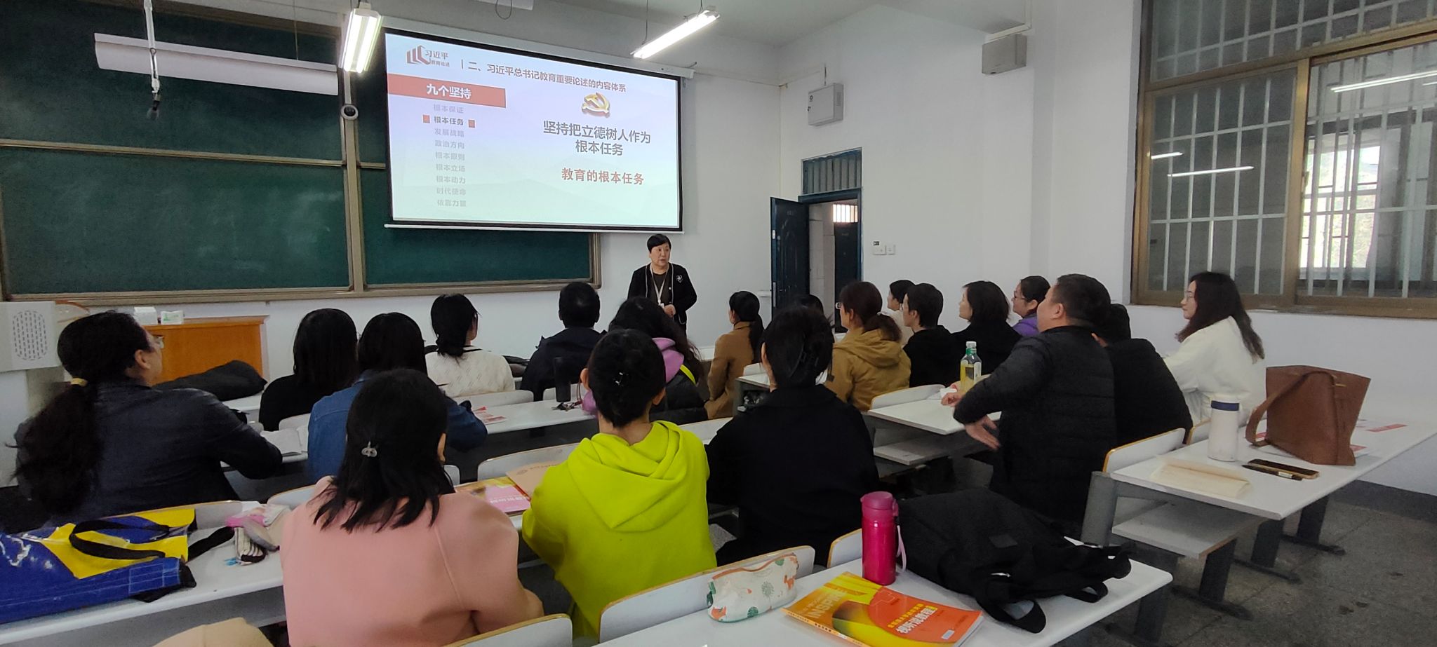 为深入贯彻落实校党委关于春季开学思政第一课的工作部署,2025年3月20日下午,外国语学院院长王莉莉教授在综合楼大教室为师生代表上了一堂题为“深入学习理解习近平总书记关于教育的重要论述”,旨在深化师生对党的教育方针的理解,提升师生的思想政治理论水平的专题思政课程。