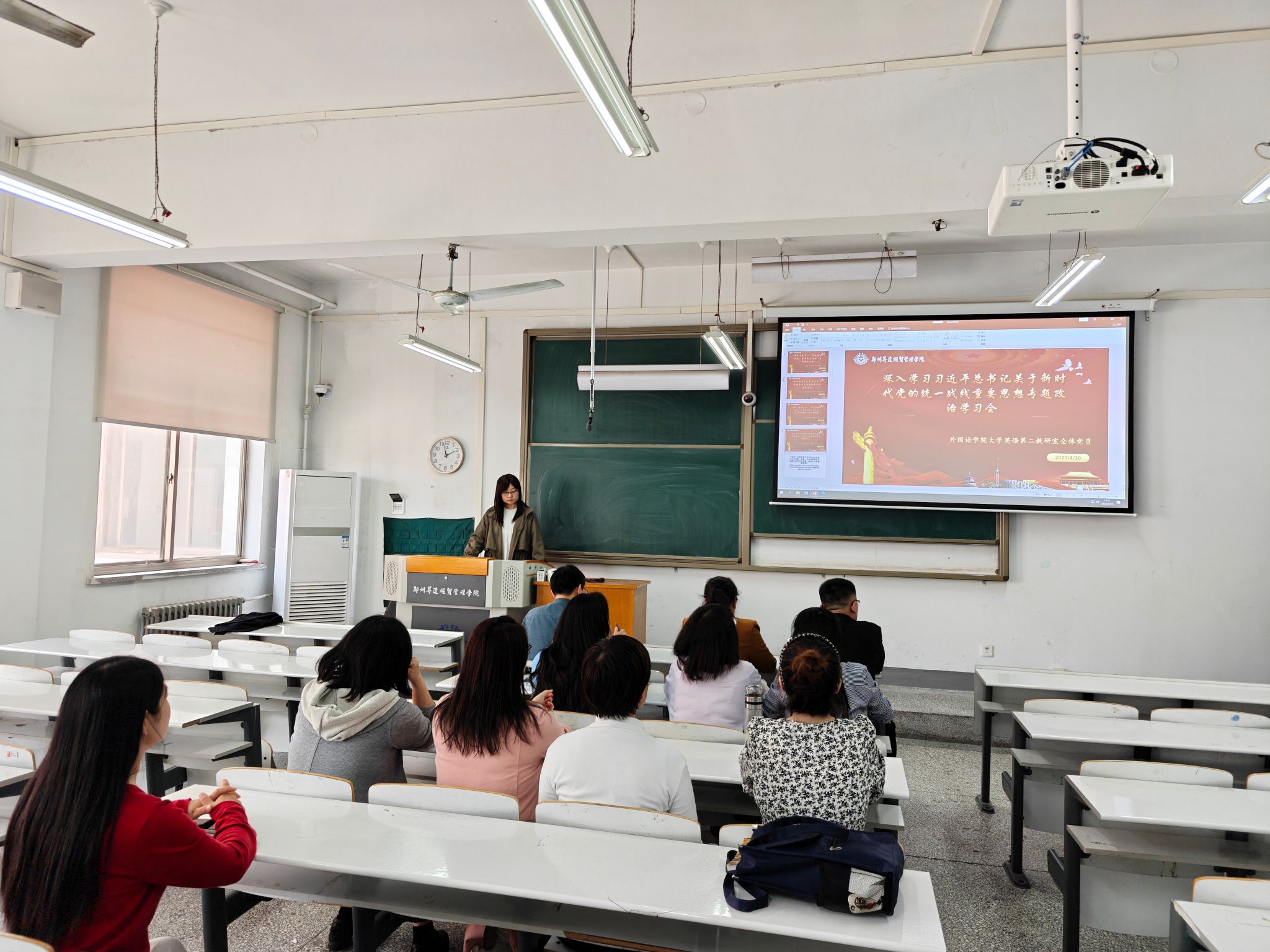 2025年4月10日中午,外国语学院大学英语第二教研室组织集体政治学习工作,深入学习习近平总书记关于做好新时代党的统一战线的重要思想。教研室全体教师参加并学习了新时代统一战线工作的核心要义与实践路径。