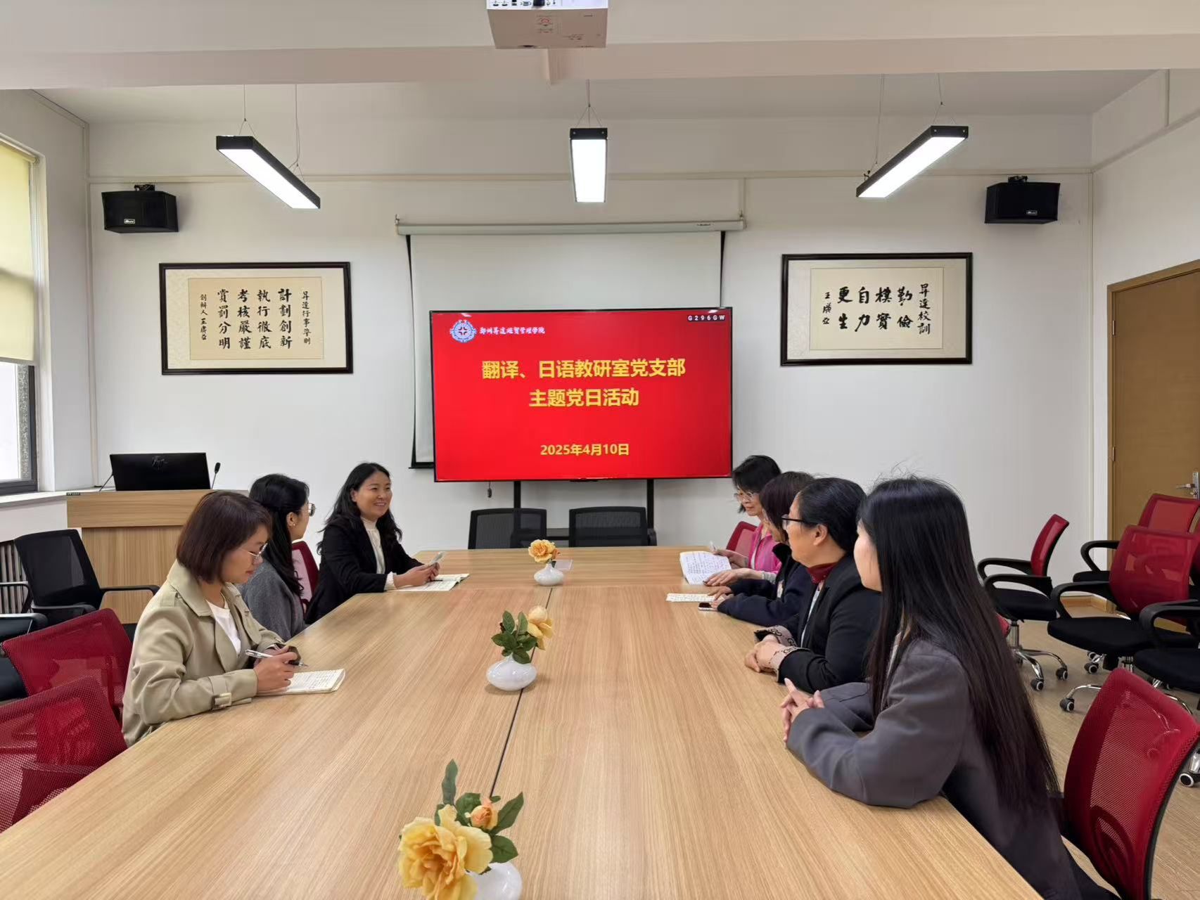 为深入贯彻党的统一战线工作要求,提升党员教师政治素养,将党的理论与专业教学紧密结合,翻译教研室与日语教研室党支部于2025年4月10日在教1楼206开展了题为“深入学习习近平总书记关于做好新时代党的统一战线工作的重要思想”的主题党日活动。活动由支部书记张艳波老师主持,全体党员参加。