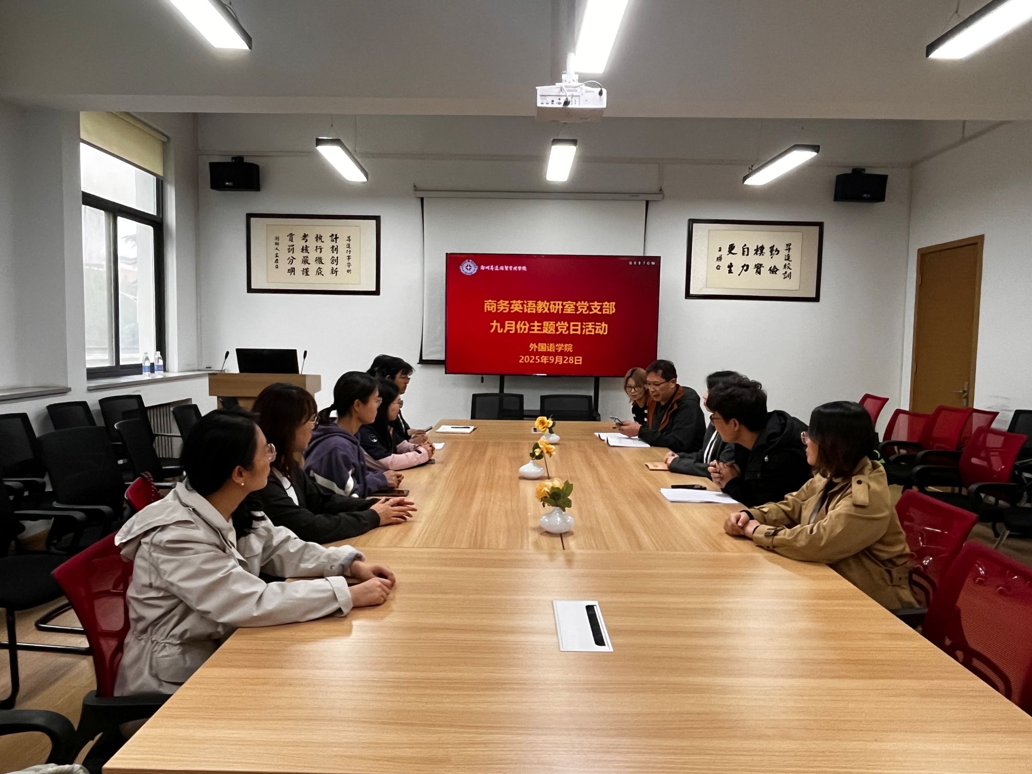 为进一步贯彻落实习近平总书记关于意识形态工作的重要论述,加强课程思政建设,商务英语教研室党支部于9月28日在教1楼206学院会议室开展了九月份主题党日活动。活动围绕“落实课程思政,加强意识形态建设”主题展开,并结合校党委、学院党委关于意识形态和安全维稳的指示要求,展开了深入讨论。
