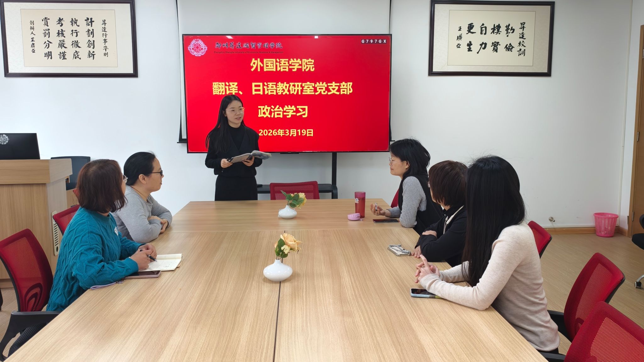 交流研讨环节,党员教师结合翻译、日语教学工作谈体会、话落实。大家表示,要以两会精神为指引,强化责任担当,提升专业能力,把学习成果转化为立德树人、教书育人的实际行动。党支部书记在总结中强调,全体党员要持续深化两会精神学习,坚持学思用贯通、知信行统一,以更加饱满的热情、更加务实的作风,为学院高质量发展和学校教育事业进步贡献力量。此次主题党日活动进一步凝聚思想共识、强化使命担当,推动两会精神在外语教学一线落地生根。(图、文/杜小芳 审核/石皓召)