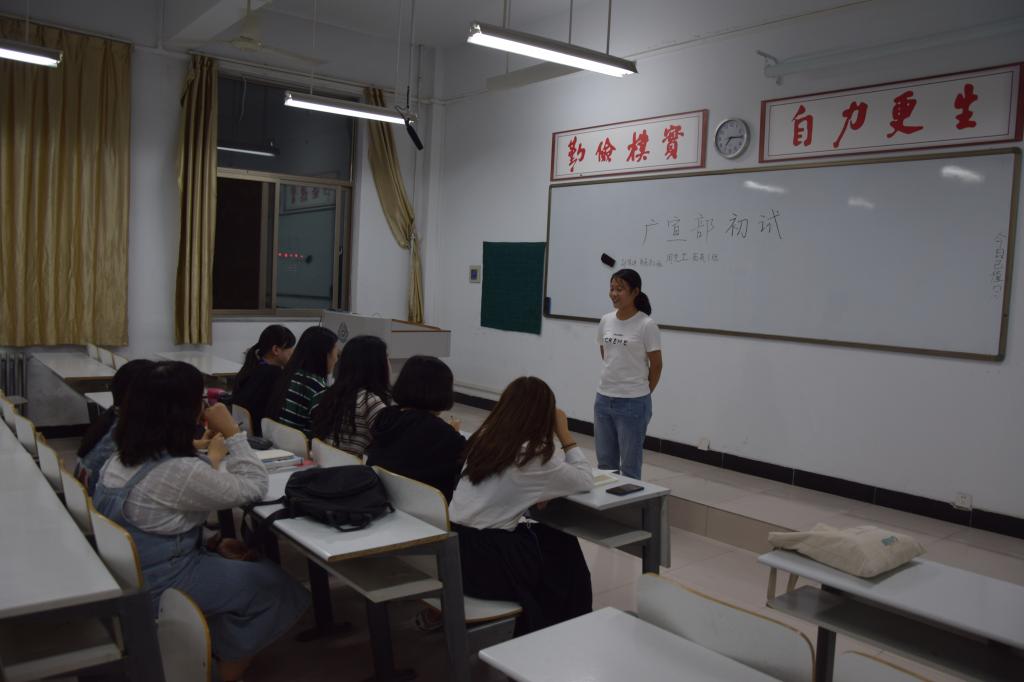 第一阶段的初试,各部门部长本着公平公正的原则,进行首次筛选,同学们先简单地进行了自我介绍,有许多同学比较紧张,但慢慢的进入状态后也都能够灵活应对面试官提出的各种问题,在初试结束后,每个部门都留下了较为优秀的同学。