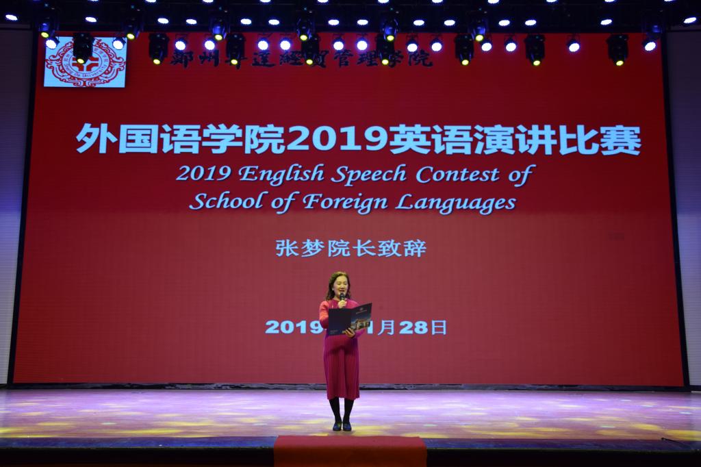 在比赛开始之前,外国语学院院长张梦教授致辞,对11位参赛选手赛前的训练给予了肯定和赞扬,也大家在今天的比赛当中取得优异成绩,并希望在场的全体同学能够扎实专业学识,练好英语口语,提高技能,为校争光。