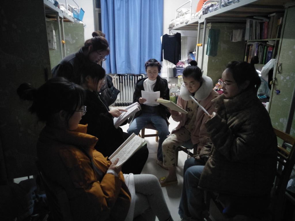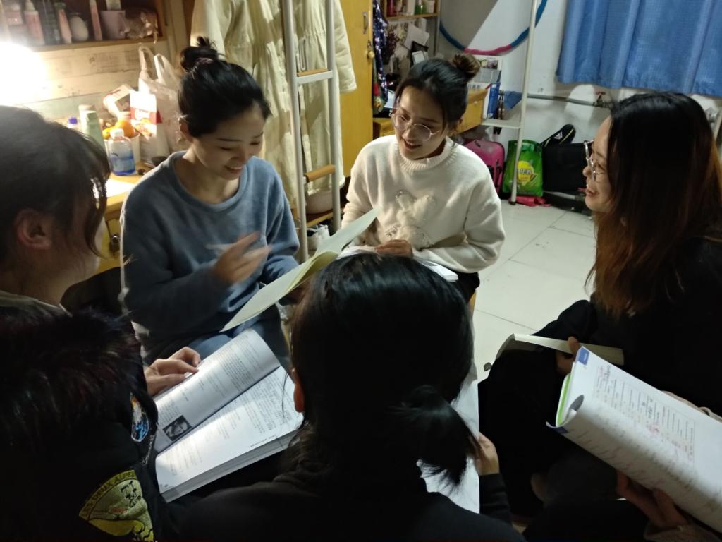 此次活动由班长和学艺委员组织进行,活动场地主要分为两块,一方面,大家以组团的形式去教室进行学习,每个小团体都有一位负责人,负责督促提醒大家有效复习,遇到不会的难以解决的问题大家会一块讨论,有时会及时请教班内其他同学或老师,然后再把一些集体性的问题发送到班级群里,展开进一步的总结讨论学习,以加深大家的印象。另一方面,在白天学习之后,我们还以每个宿舍为单位进行总结讨论,晚上的时候大家会聚在一起讨论学习,相互分享自己关于期末学习的一些想法和建议。这样很有益于大家去集思广益,从而达到集体进步的学习目标。此外,大家还组织了集体的学习检查活动。每个寝室的寝室长为代表,日常地检查宿舍成员的笔记,并把检查结果汇报给学习委员,学习委员进行总结汇报,并且及时向同学反映班级学习情况,然后做出调整。