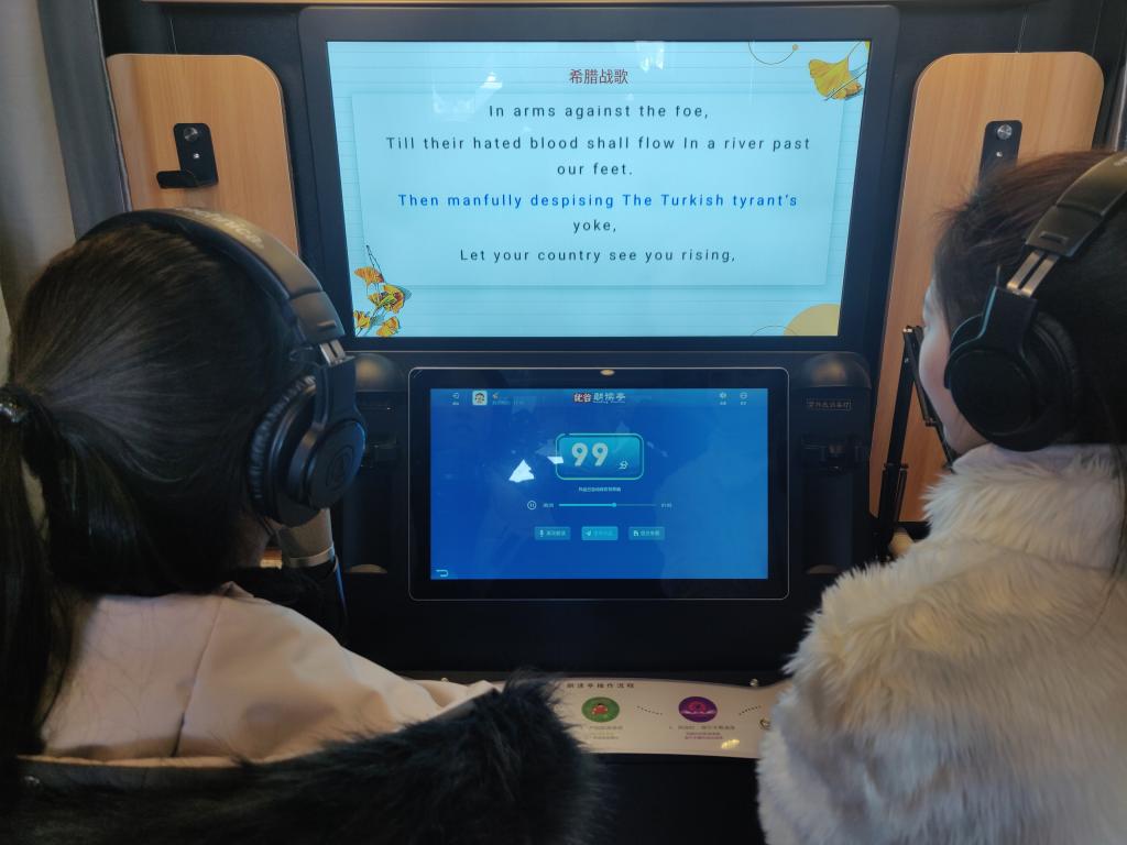 为了进一步落实我校本学期好学月工作安排,营造良好的学习氛围,促进同学们之间的学习交流,18级商英本翻译专业数名学生代表于2019年12月30日上午九点在图书馆一楼大厅开展了好学月“相约朗读亭”活动,首次体验学校的智慧化新装备。