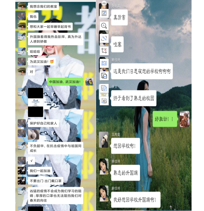 外语学院18级翻译1班团支书李萌同学说:在上课开始,我们观看了肃穆的升旗仪式。不知为何,此次的升旗仪式比以往的更显得庄严,神圣。国歌在心中回荡,使我心潮澎湃,更让我觉得中国一定会战胜此次没有硝烟的战争。河南省教育厅郑邦山厅长说的一席话,"逆行而上,主动请缨,支援武汉。"让我觉得,虽然此次战争,我们被动卷入,但我们有义务有责任去面对一切,战胜一切,风雨同舟,携手同进。我们更要在这场战争中记住教训,吸取经验,把能做到的,会做的,做到最好,做到最佳,共同完成这场生命教育,信念教育,科学教育,道德教育。