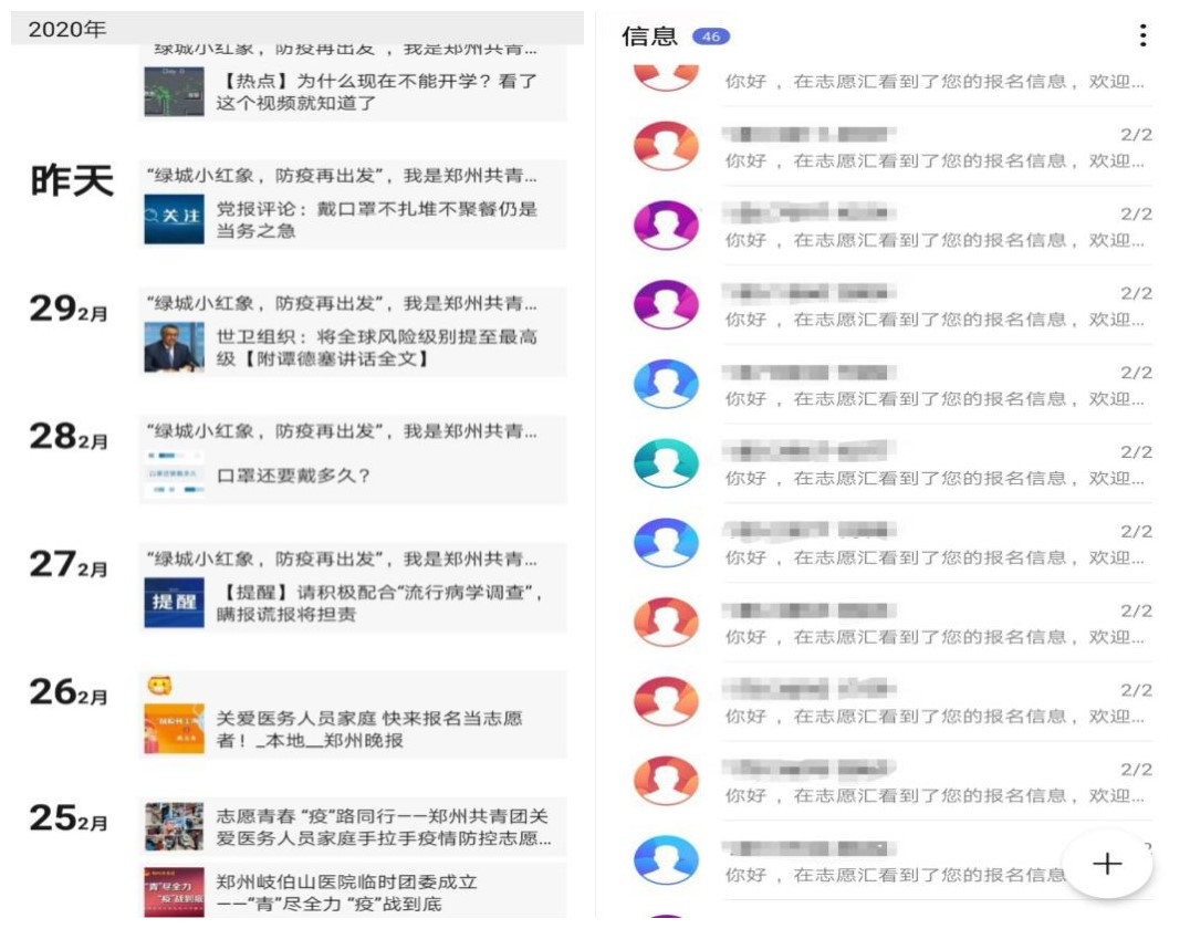 面对形势严峻的疫情,外国语学院19商英专科3班学生赵开心积极响应当地团市委“绿城小红象”号召,做一名郑州共青团疫情防控线上青年志愿者,于2月1日起积极投身抗疫防疫工作。