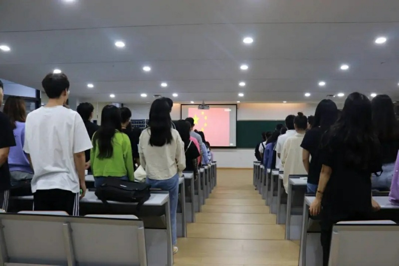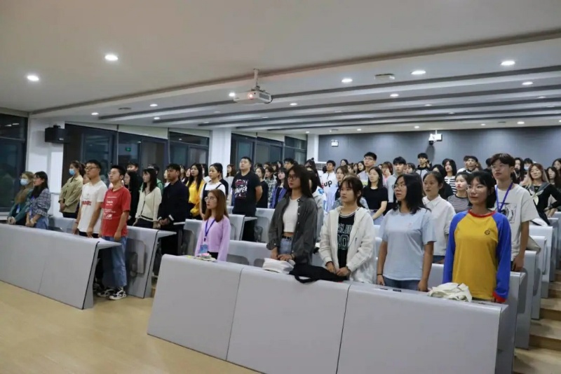新中国成立七十一周年之际,外国语学院团委组织的国庆观影活动于9月29日18:30准时在一号楼109教室开始,外语学院18、19级同学按时参加。活动开始,大家肃然起立,望着前方的五星红旗,奏唱中华人民共和国国歌。