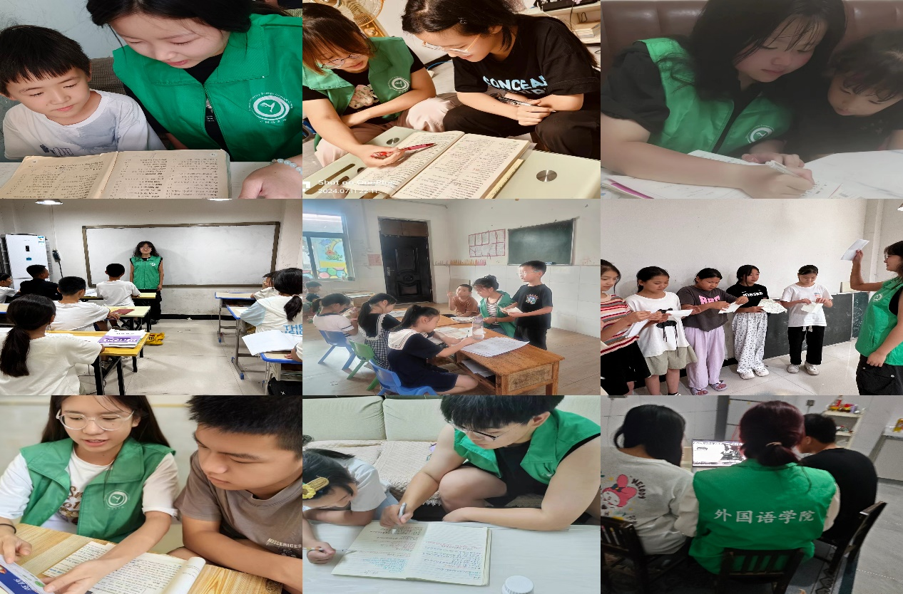 在活动实施持续7月10日至8月10日一个月中,实践团成员们充分发挥了自身的专业优势和教学热情,根据孩子们的年龄和英语水平,采用了灵活多样的教学方法,如英文歌曲教学、趣味游戏互动、角色扮演等,让课堂充满了欢声笑语。同时,我们还耐心细致地解答孩子们的疑问,鼓励他们大胆开口说英语,帮助他们克服语言障碍,建立自信心。