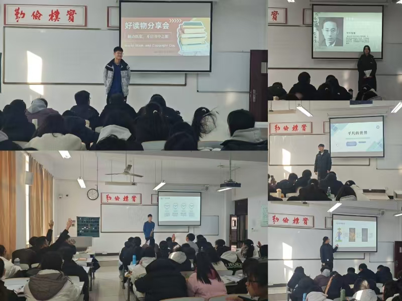 外国语学院为激励学子们多读书、读好书、拓宽思维、增长见识,在本学期“好学月”期间各班级积极开展了读书分享会活动,旨在丰富同学们的精神文化生活,为同学们营造了浓厚的阅读氛围。