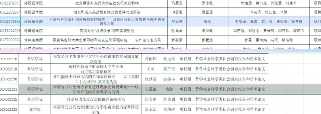 - 第六届大创:邢玉峰同学主持的《抖音号运营对英语社团发展的影响》已顺利结项,陈苗苗同学主持的《英语专业“以演促学”创新实践研究》已顺利结项
