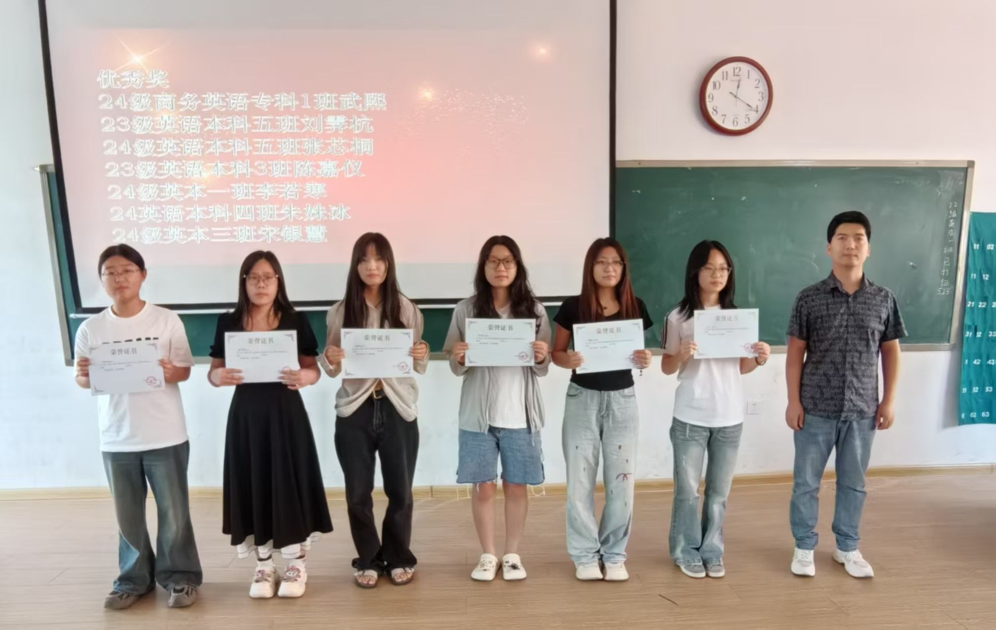 三等奖:24 商英专一 武熙、22 级英本 2 班 张雨、23 级英本三班 韩娇娇、24 级英语本科一班 王菲、24 级翻译本科一班 毛汐月、23 级英本 4 班 王英杰、23 级商英专科 1 班 苏一桐