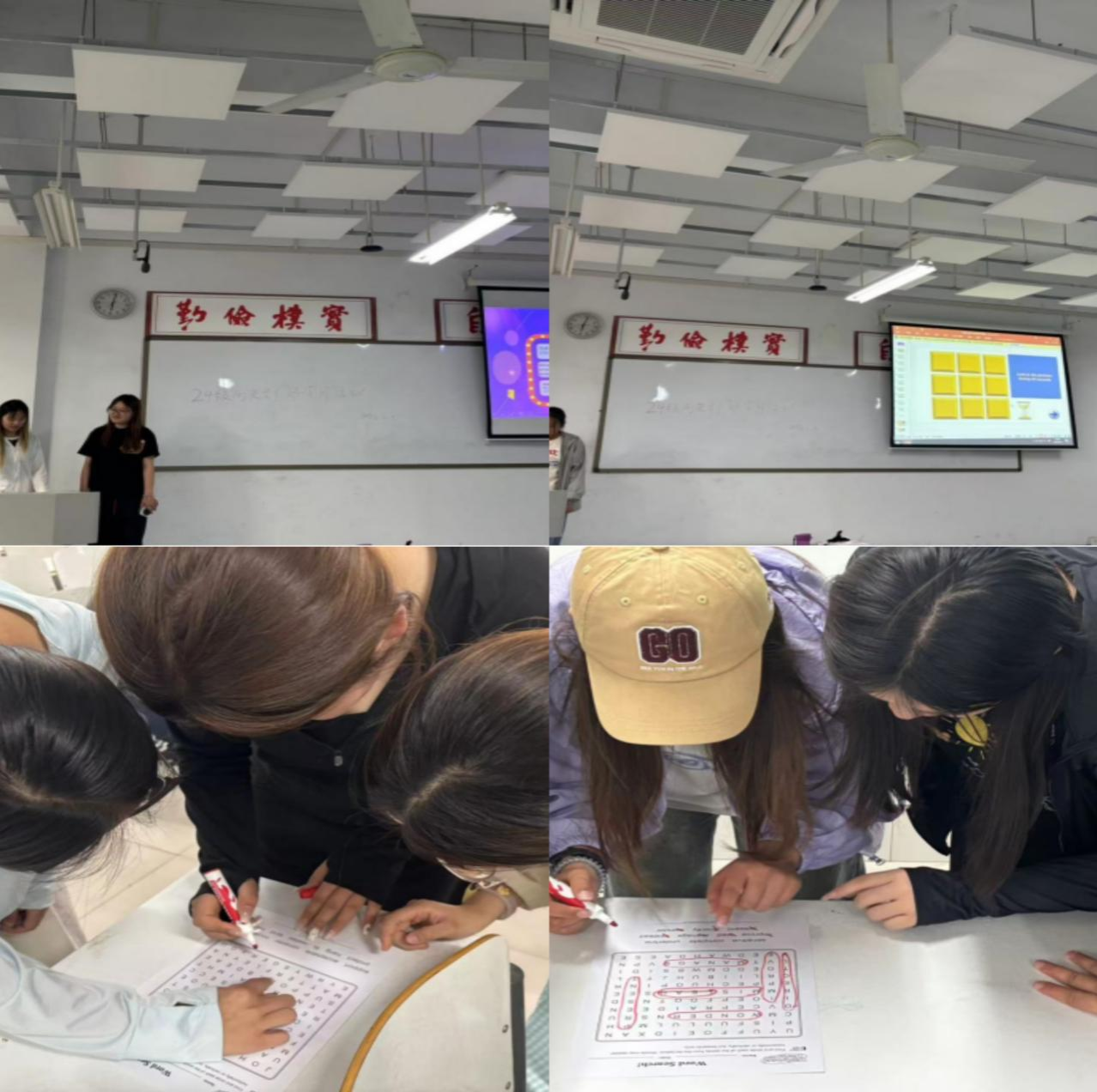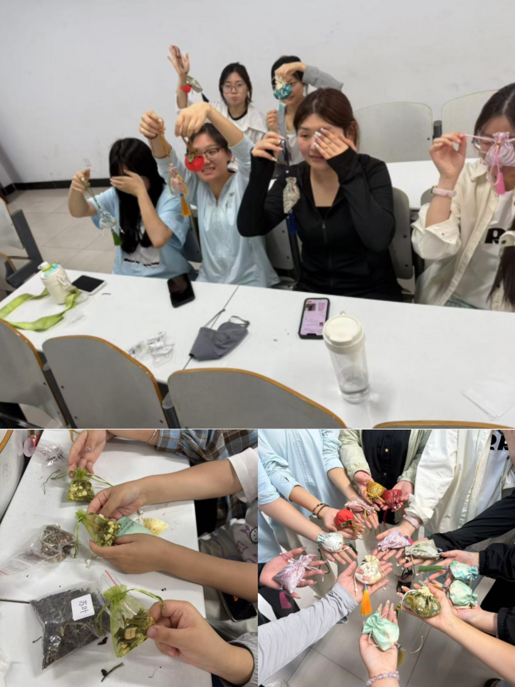 在好学月活动中,外国语学院将英语学习与传统节日相结合,开展了形式多样的活动,激发学生学习热情。在“转盘大挑战”活动中,设计英语表达、知识问答等四类任务,以“随机任务+即时反馈”机制,将语言训练变为闯关游戏;在单词迷宫团队竞技中,各组学生在字母矩阵找商务英语词汇,组长用“分区扫描法”带领组员夺冠,以“小组对抗+策略协作”形式,让词汇记忆变策略探索;完成闯关后,同学们围坐在一起制作端午节香包,邀手工老师指导,融入“好学不倦”刺绣,让同学在传统文化中理解知识寓意。