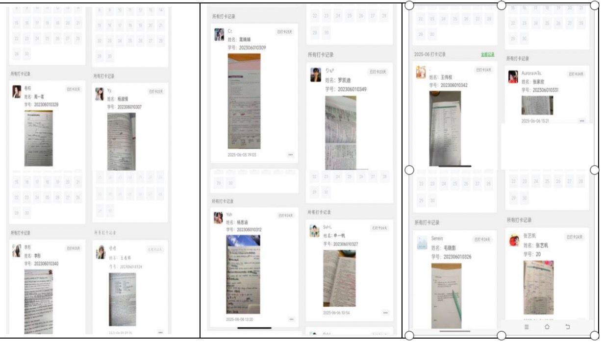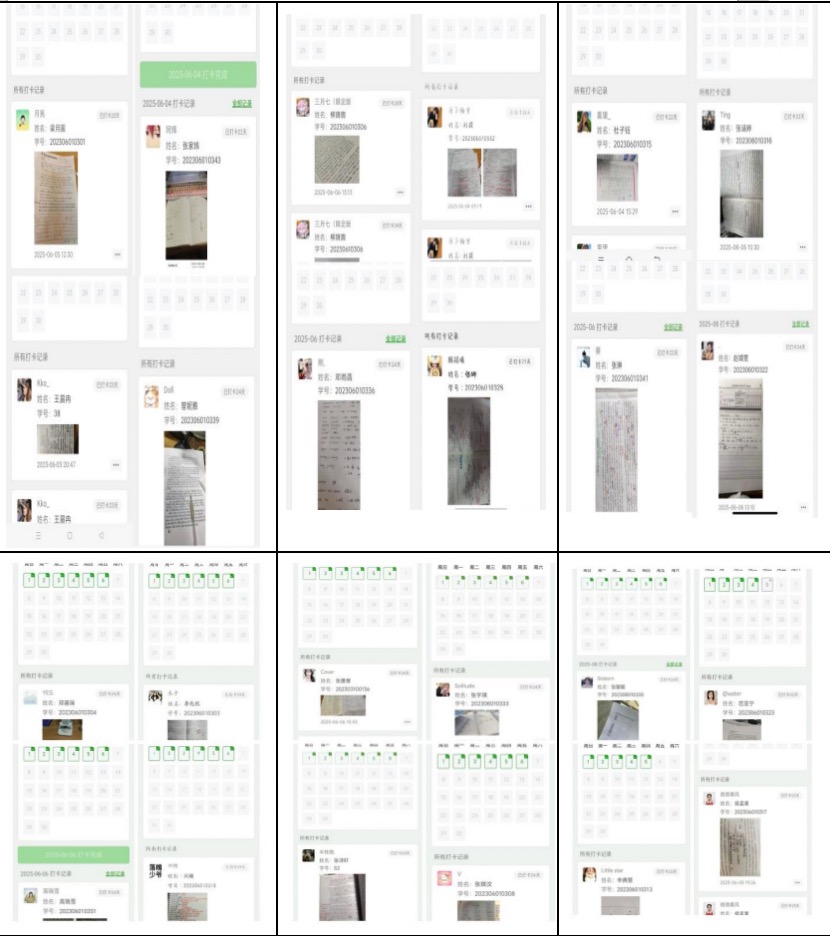 为培养同学持之以恒的学习习惯,营造浓厚学习氛围,我院发起“21天学习打卡挑战”。活动要求5月14日至6月13日期间,同学每日拍照记录学习时长与内容并标注日期。活动中,同学积极响应,记录背诵单词、阅读专业书籍、习题练习等学习成果。截止日,不少同学完成21天打卡接龙。持续打卡让同学学习更规律,收获进步喜悦,部分同学还写下心得体会。