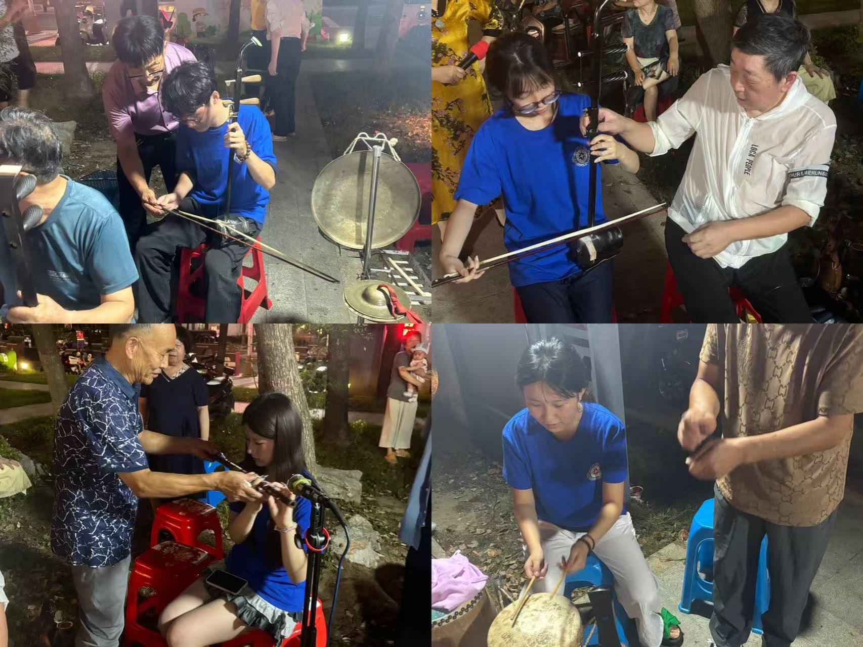 为助力传统戏曲传承,我们团队联系了春风戏曲团的艺术家们,约定在当地政府广场开展一场戏曲展演与交流活动用实际行动学习传承传统艺术。活动当天,实践团成员早早来到政府广场,协助戏曲团做好演出前的准备工作。搭台、调试乐器,成员们在忙碌中近距离感受着戏曲艺术的严谨与精致。随着观众陆续到场,演出正式拉开帷幕,唱念做打间将戏曲的独特韵味展现得淋漓尽致,实践团成员们专注观赏,沉浸在传统戏曲的独特魅力中。