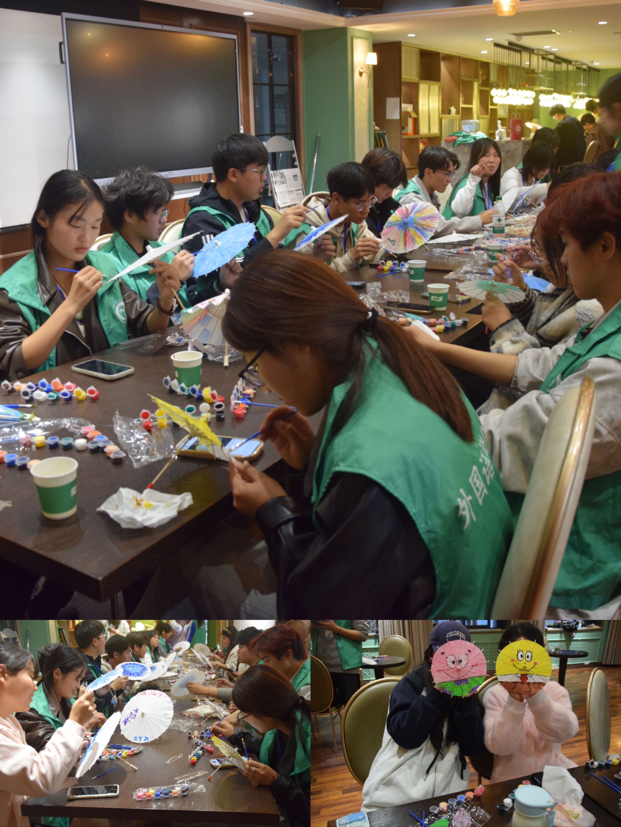 本次活动以“巧手绘制油纸伞,传承非遗暖人心”为核心,为同学们搭建起近距离接触非遗、释放自我的平台。参与者可尽情发挥创意,在油纸伞上描绘心仪图案——无论是传统花鸟纹饰,还是个性十足的现代元素,皆能在此绽放光彩。绘制过程中,大家沉浸于非遗文化氛围,静心舒缓日常疲惫与压力,实现自我情绪调节。活动还设置油纸伞交流环节,外教老师Elizabeth与同学们分享绘制心得,让文化的温暖与归属感在互动中传递。
