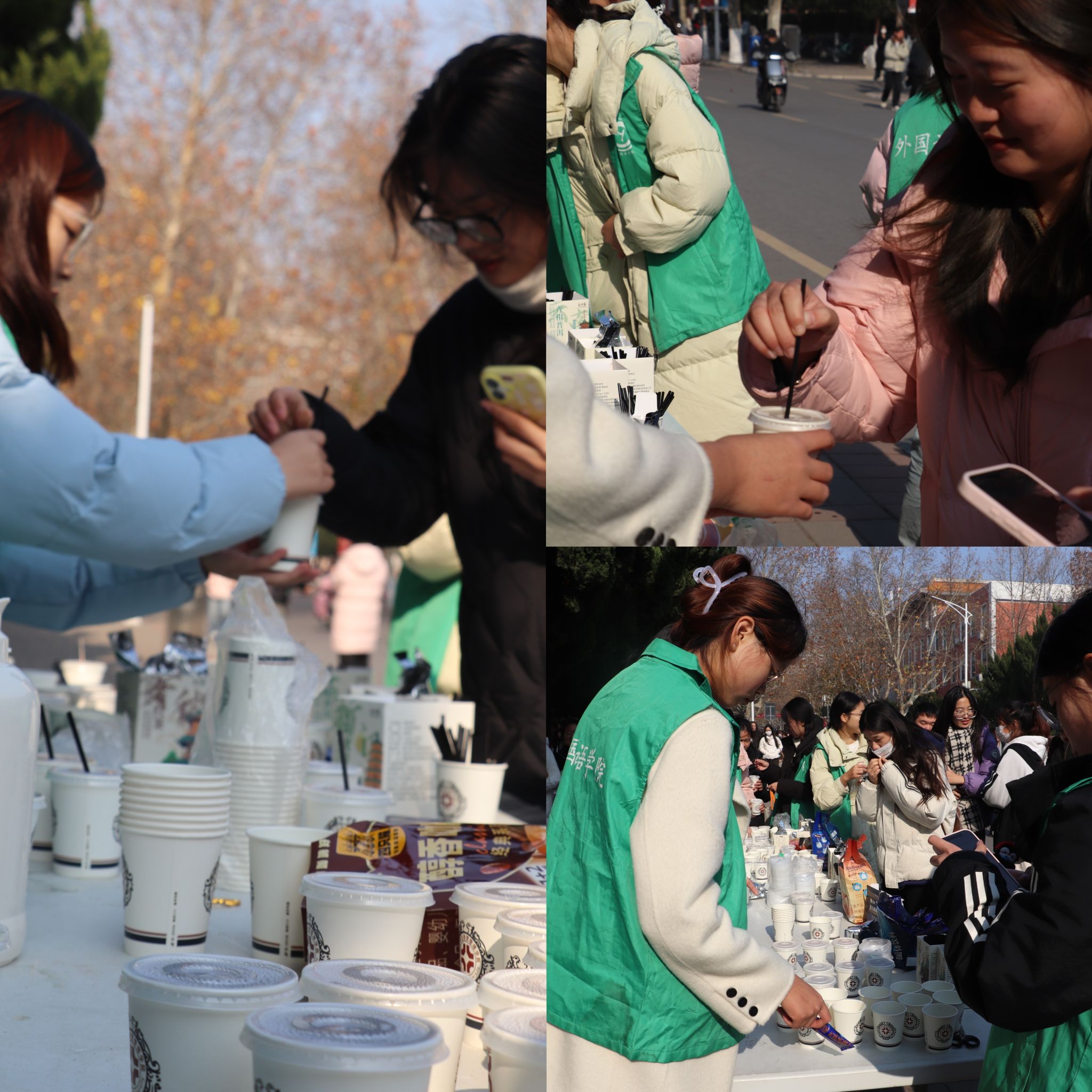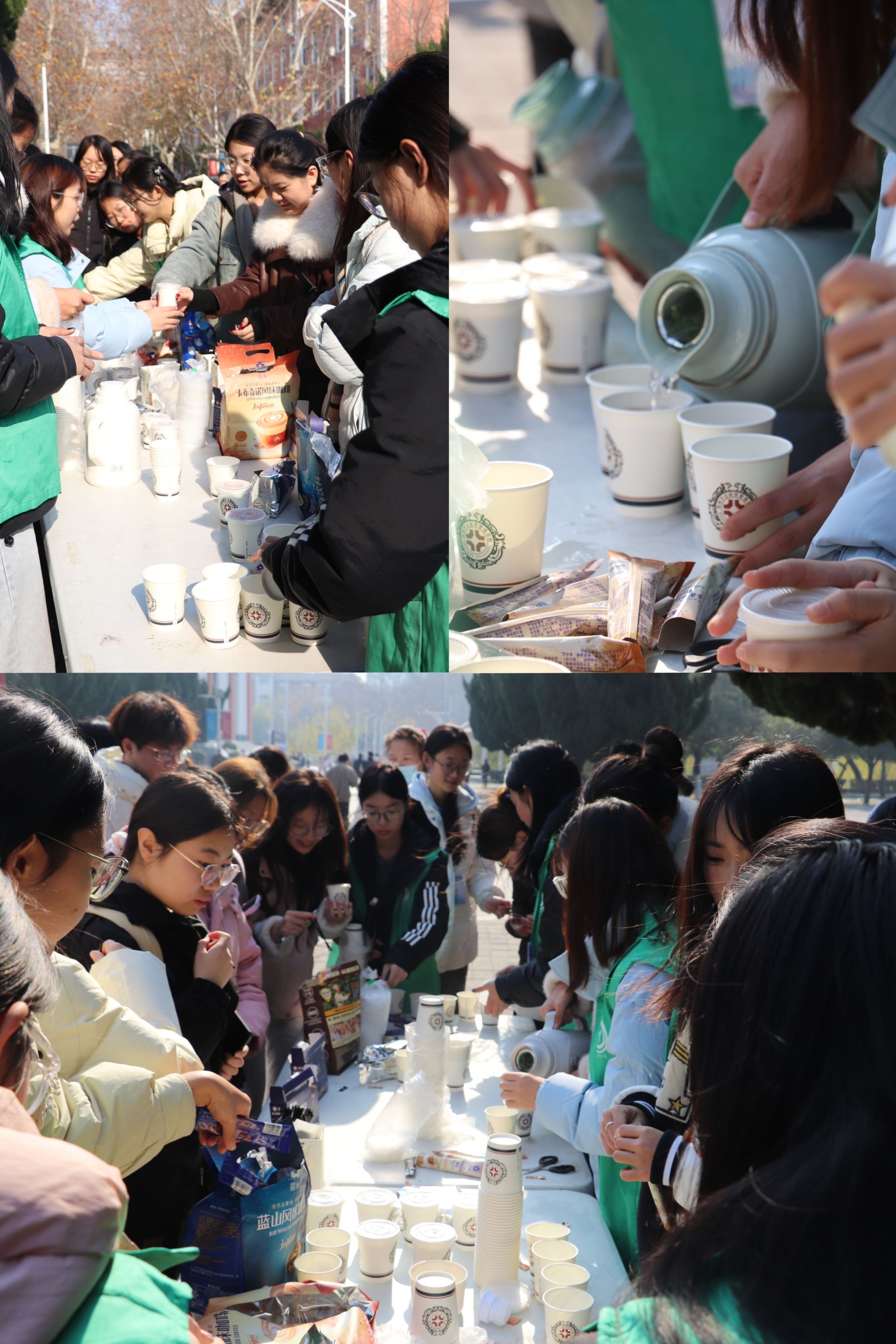 此次活动不仅是为了送温暖,更是希望通过这杯热饮传递满满的祝福与鼓励。从精心熬煮茶饮到细致布置场地,志愿者们全程分工明确、协作默契,用实际行动诠释着“奉献、互助”的志愿精神。现场同学纷纷表示,这杯热饮不仅温暖了身体,更让冬日的校园充满了浓浓的人情味。